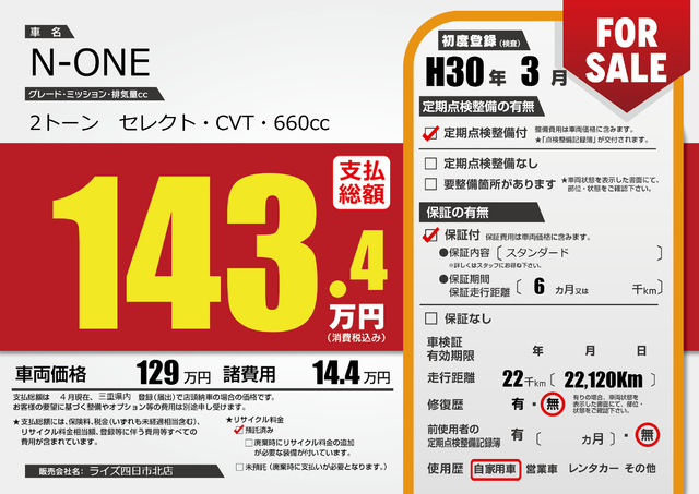 保証付き 保証内容(---) 1ヶ月または(1)千kmまで |