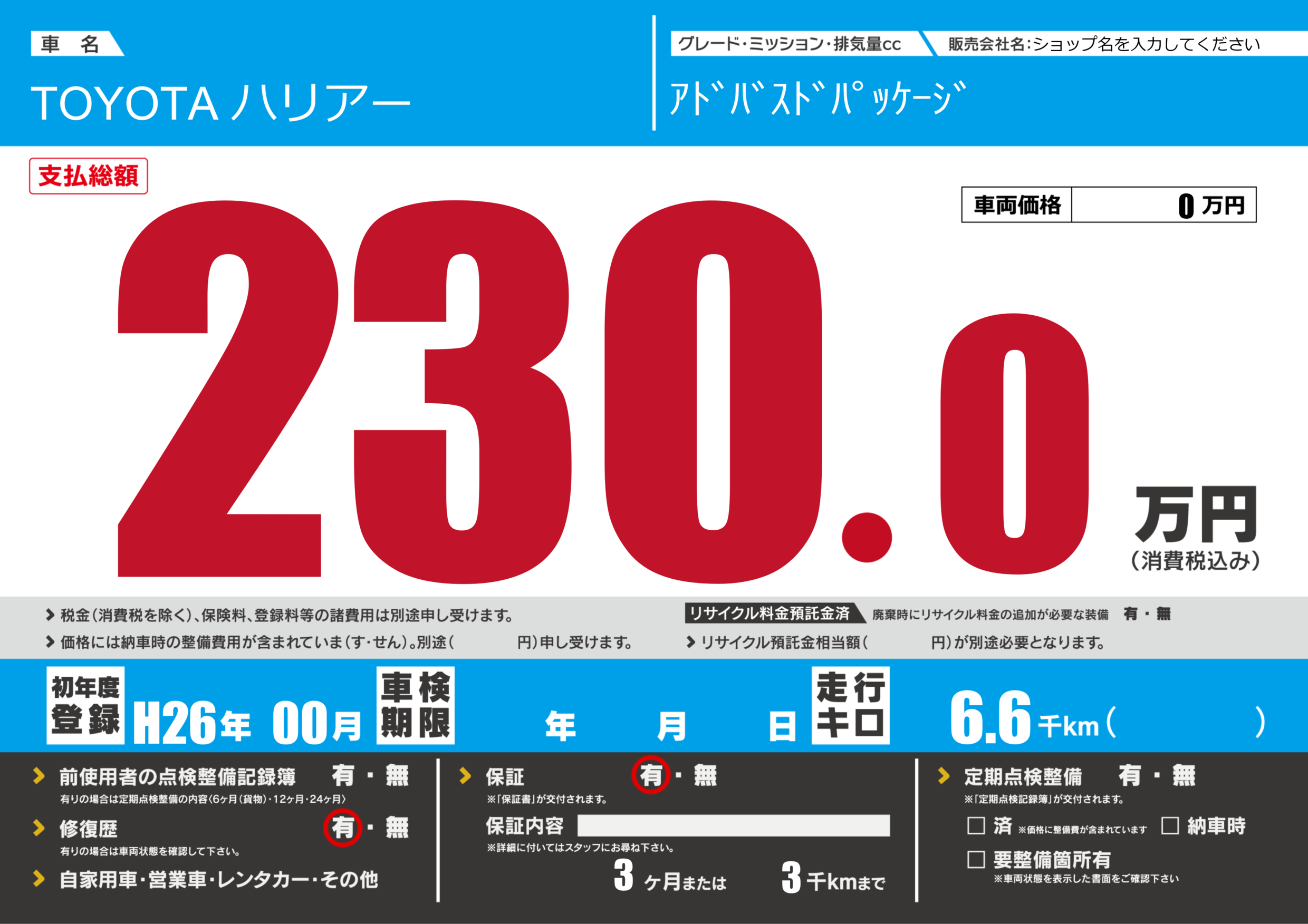 | 車検制限 | - 年 - 月 - 日 | ||