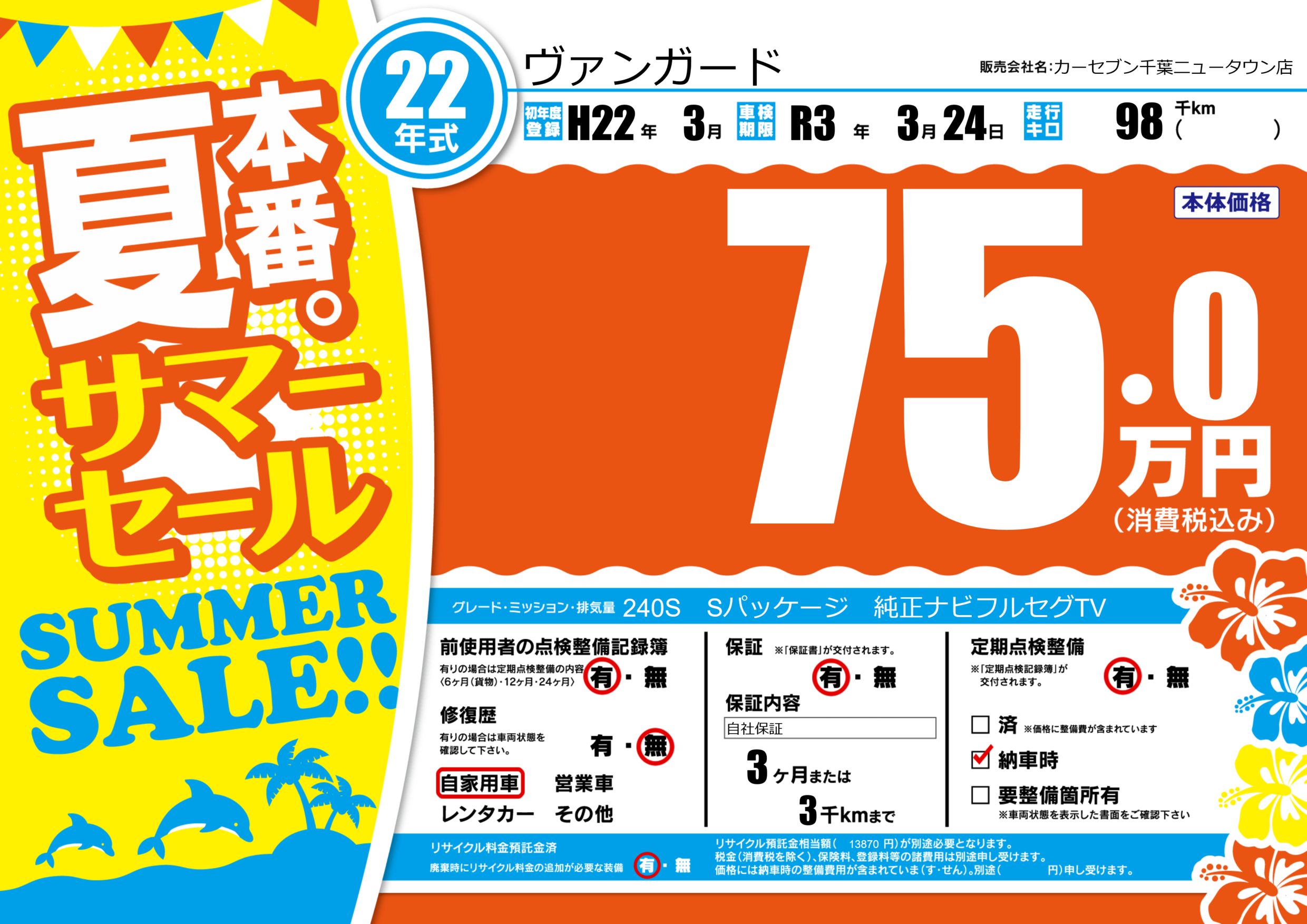 | 走行キロ | 9.8万km | 初年度登録 | H22年3月 |