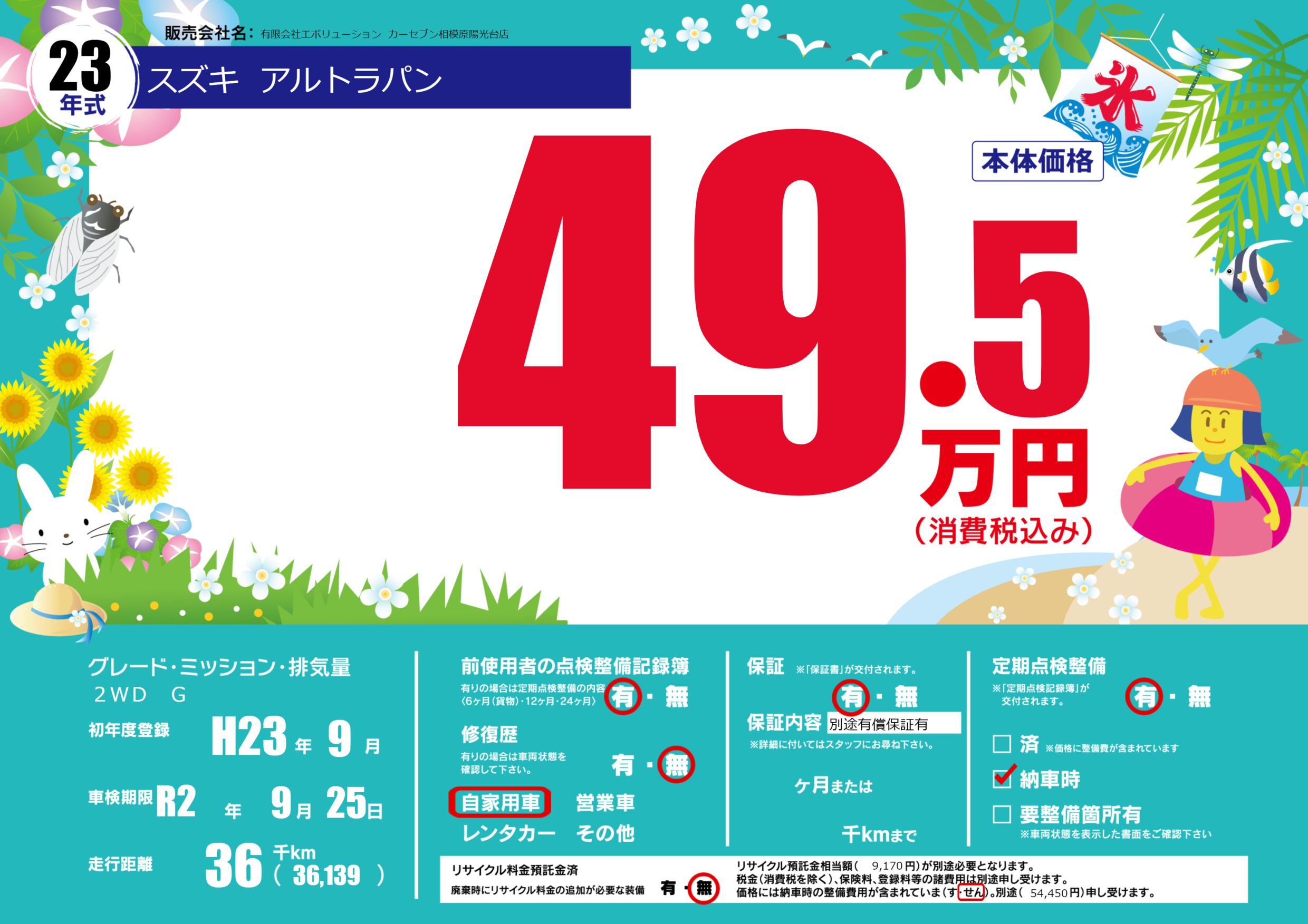 保証付き 保証内容(別途有償保証有) ---ヶ月または()千kmまで |