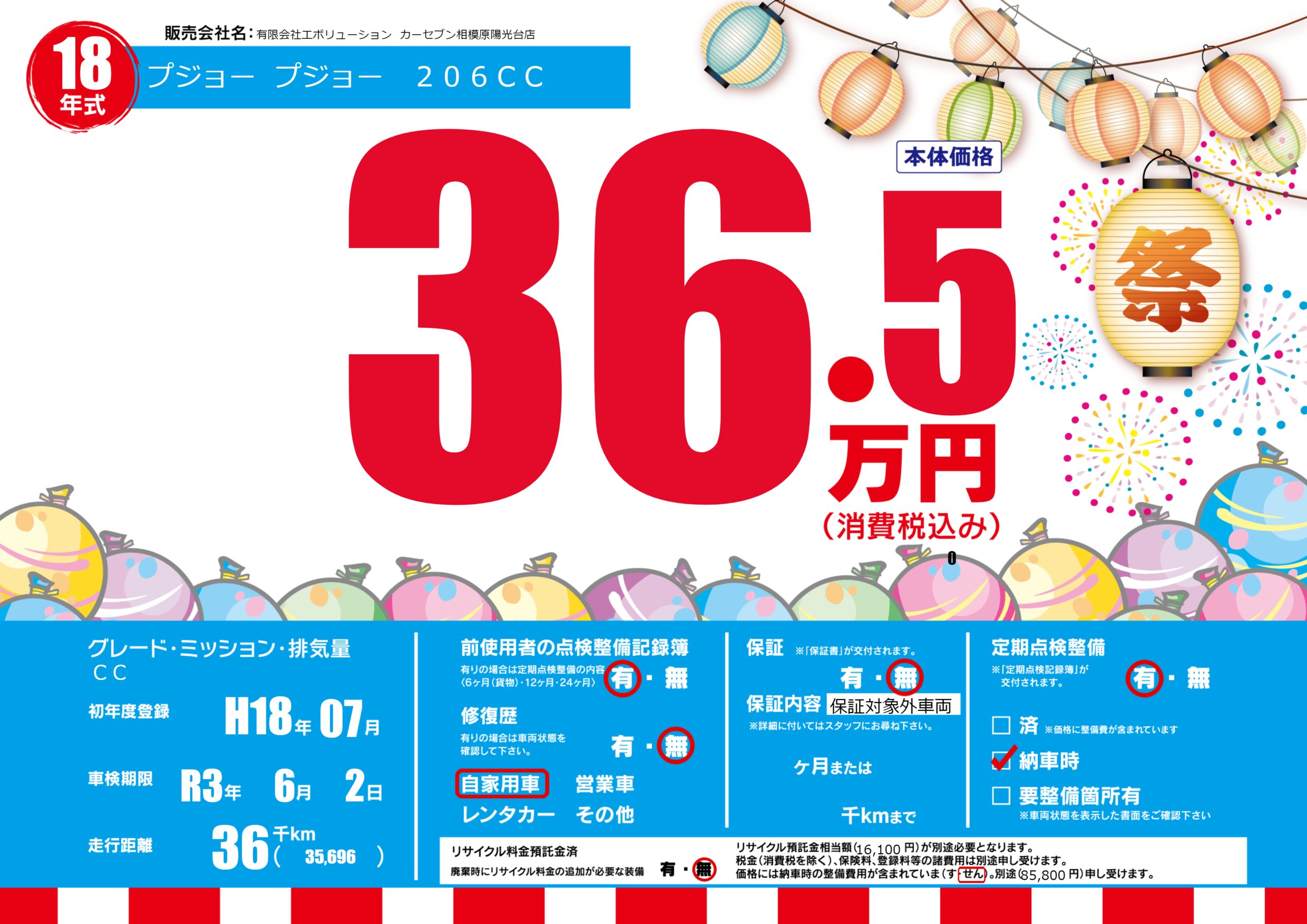 保証なし 保証内容(保証対象外車両) ---ヶ月または()千kmまで |