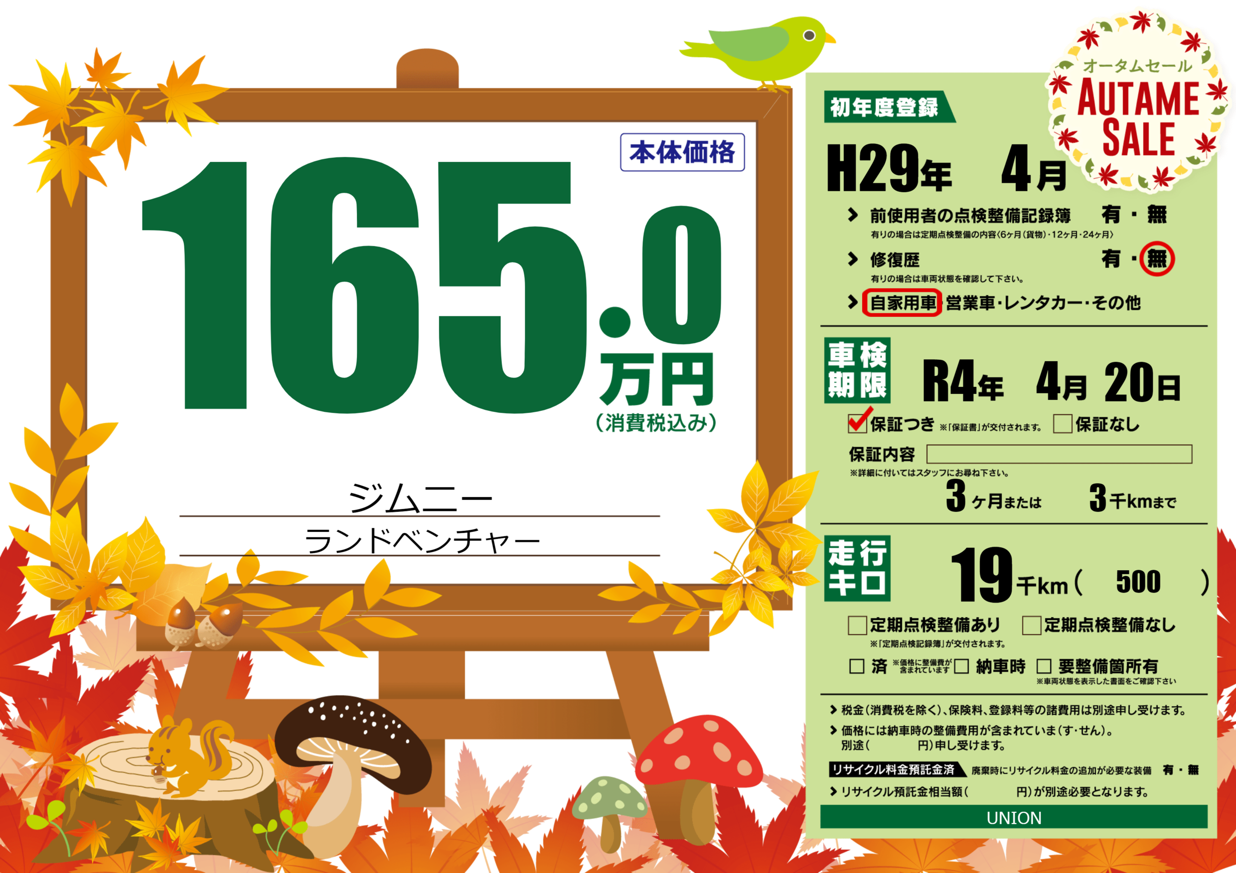 保証付き 保証内容(---) 3ヶ月または(3)千kmまで |