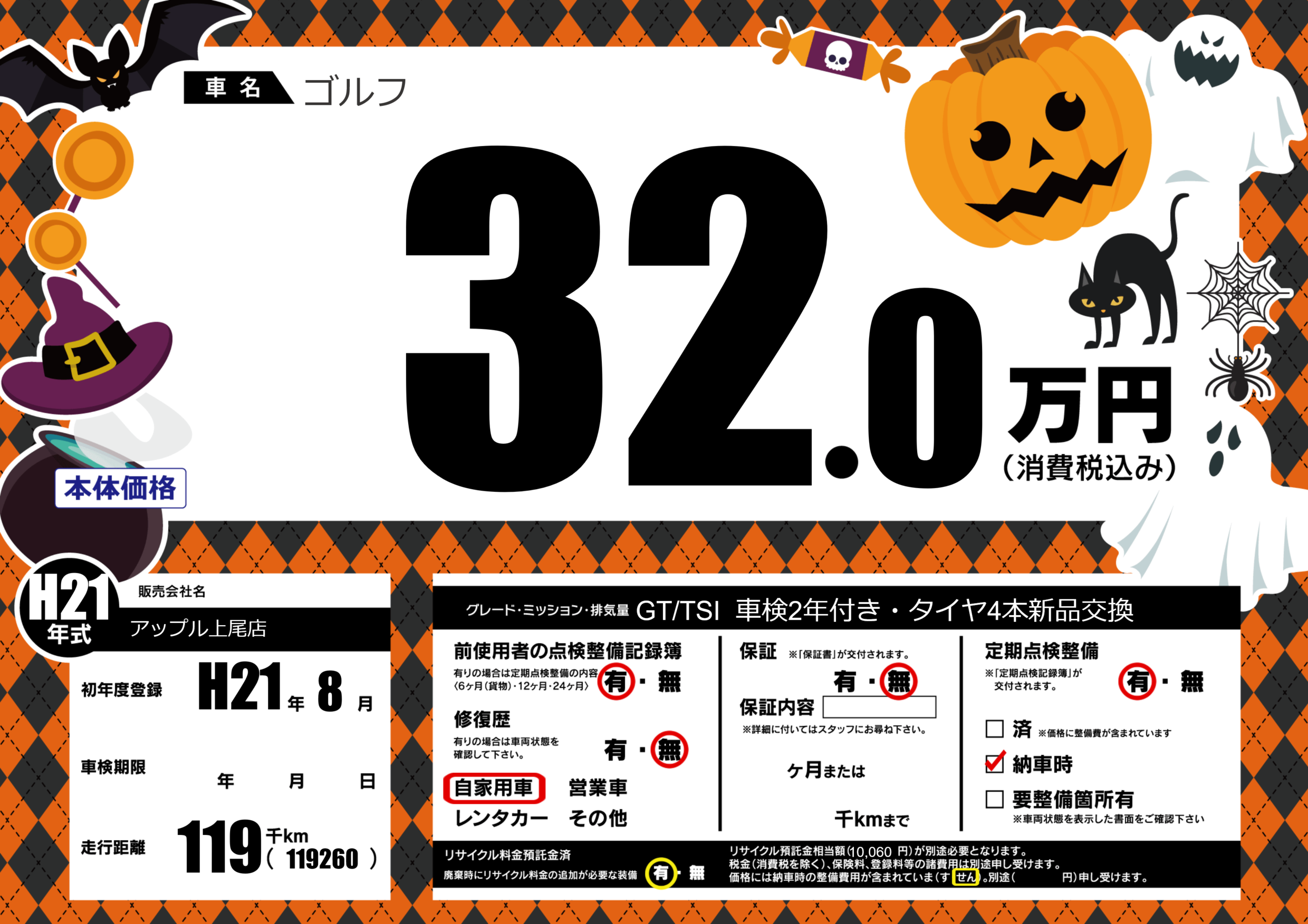 GT/TSI 車検2年付き・タイヤ4本新品交換 |