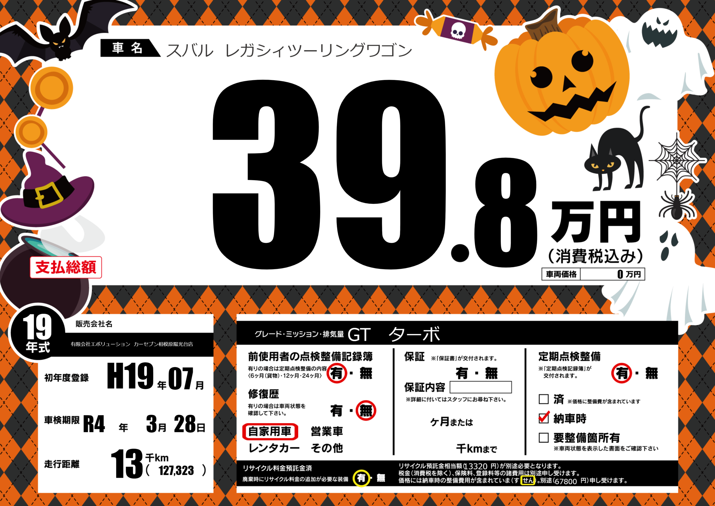 | 定期点検整備 | 定期点検整備あり 納車時あり | ||