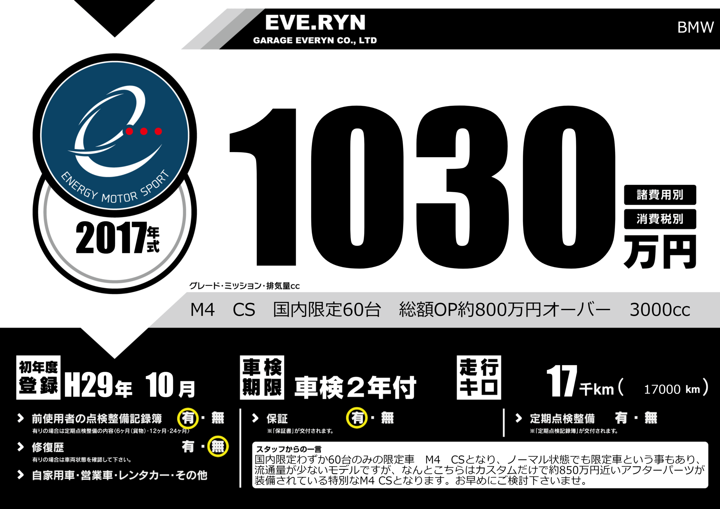 M4 CS 国内限定60台 総額OP約800万円オーバー 3000cc |