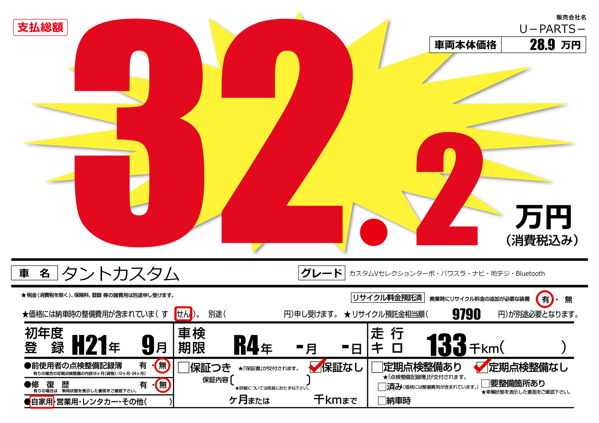 | 車名 | タントカスタム | グレード ミッション 排気量 |