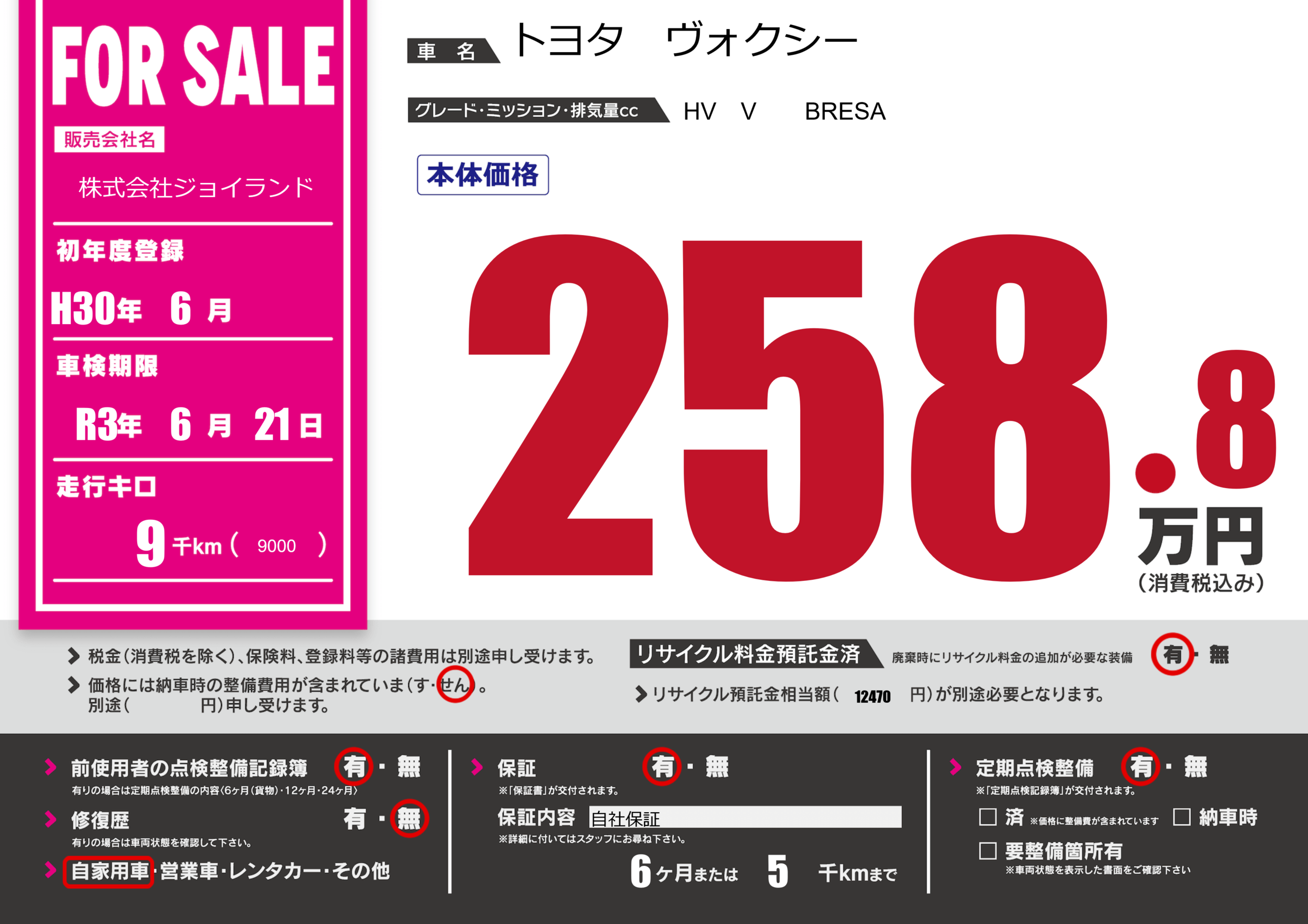 なし | 車検制限 | R3年6月21月 |