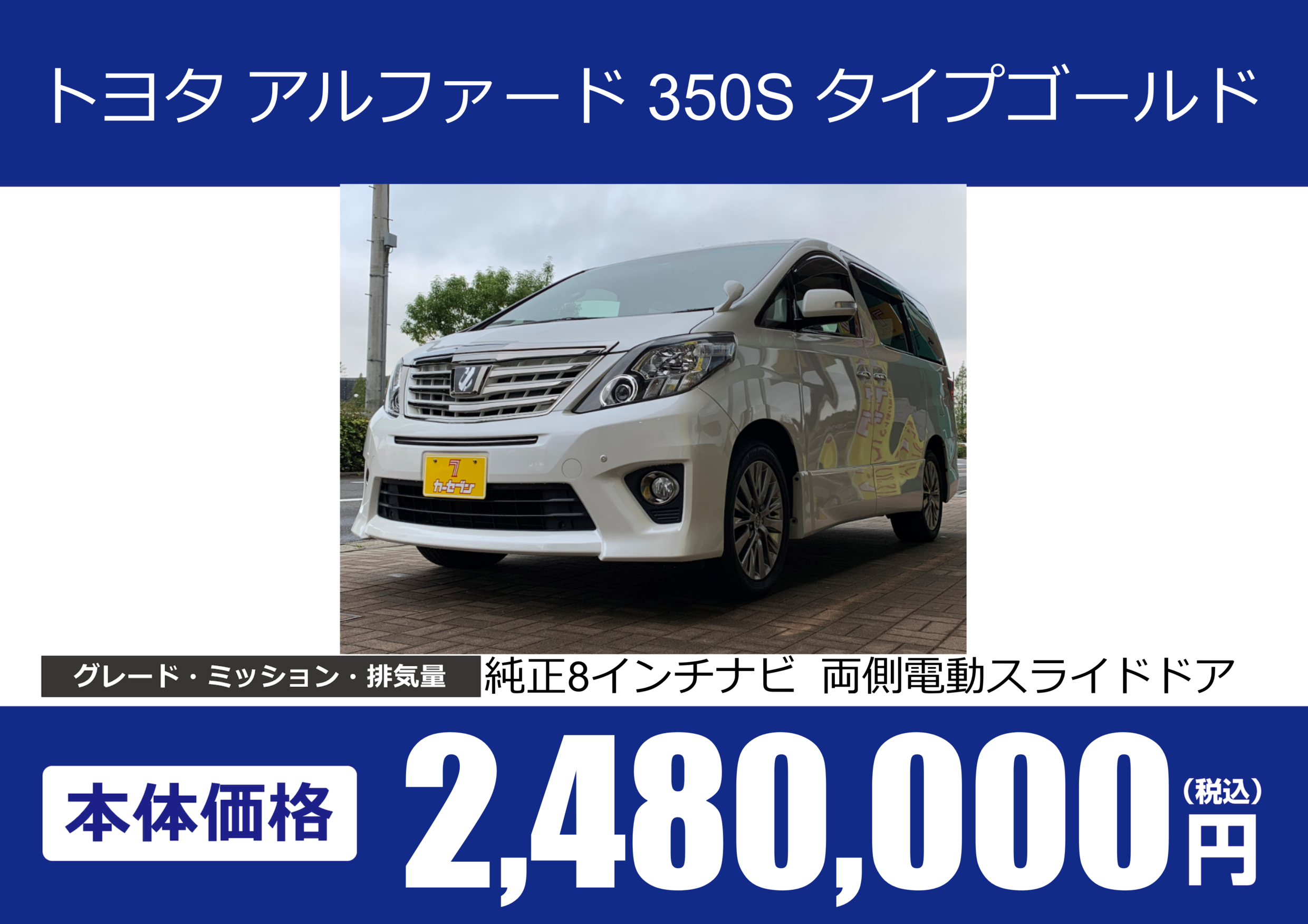 | 車名 | トヨタ アルファード 350S タイプゴールド | グレード ミッション 排気量 |