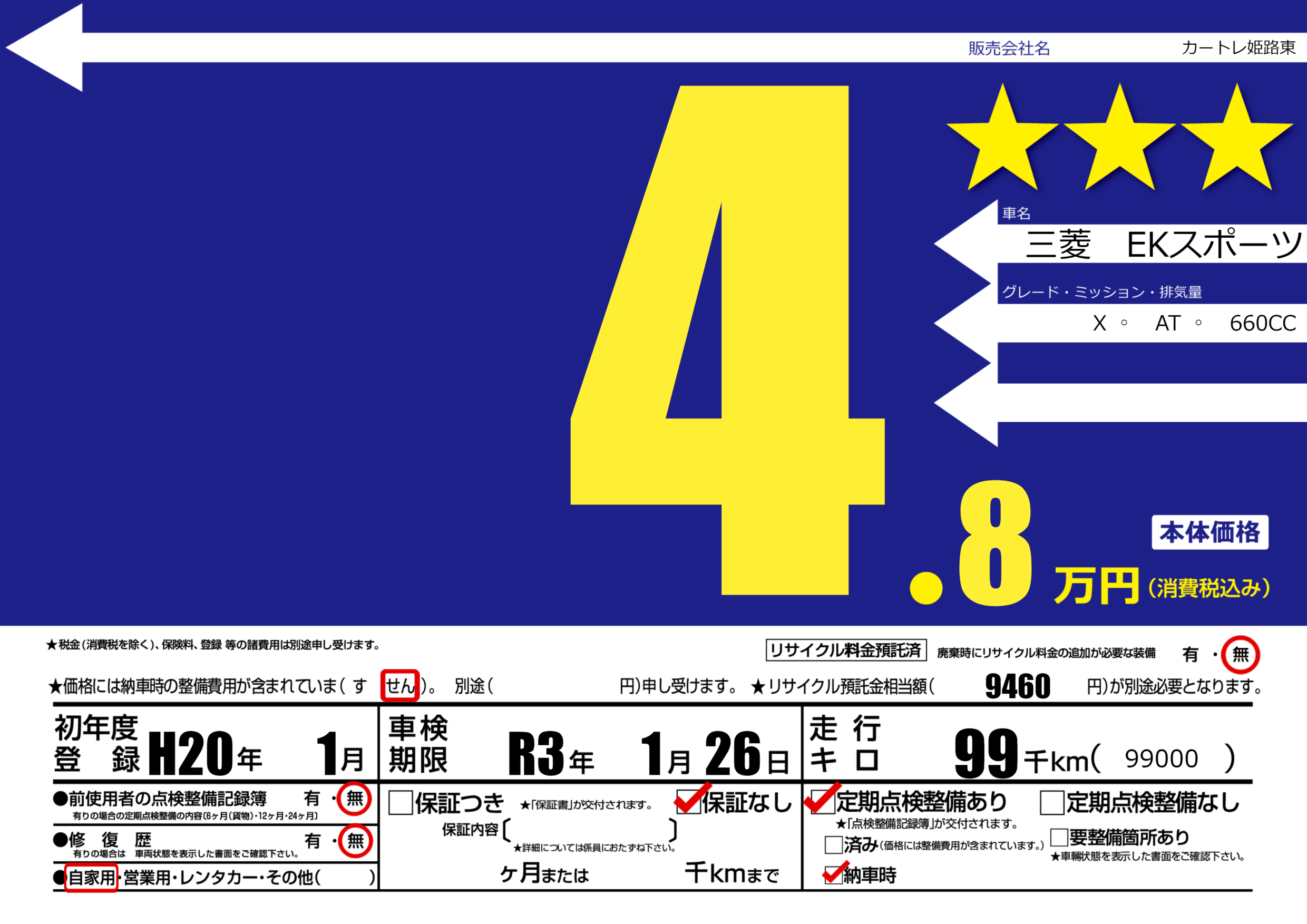 なし | 車検制限 | R3年1月26月 |