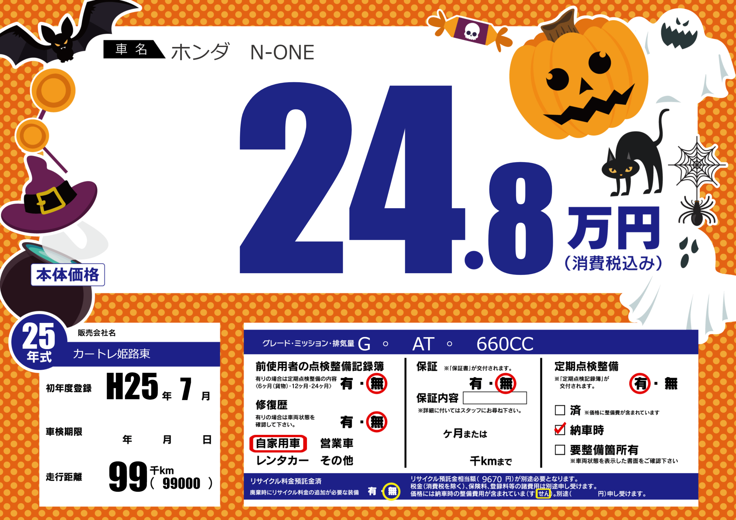 | 車名 | ホンダ N-ONE | グレード ミッション 排気量 |