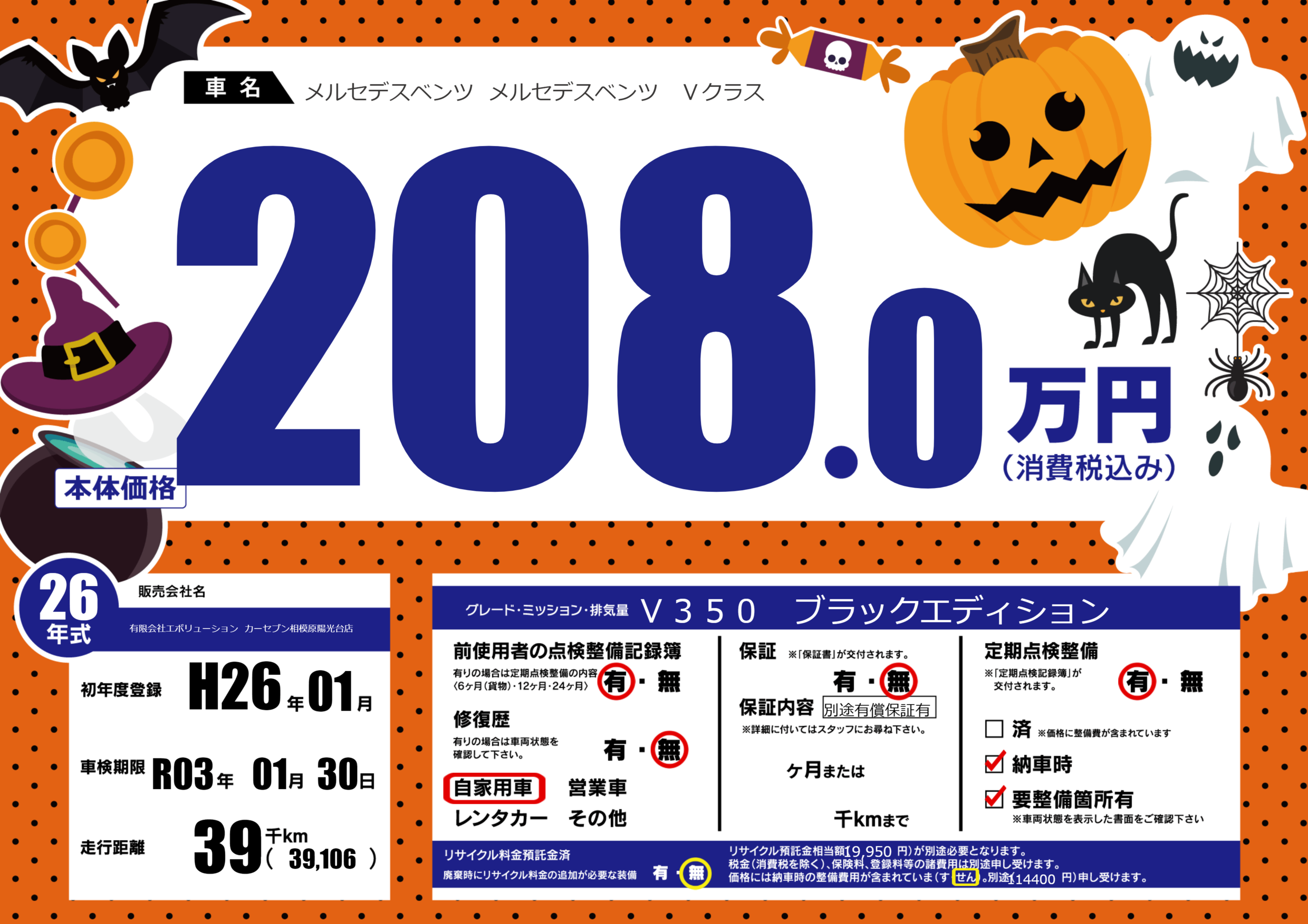 | 車名 | メルセデスベンツ メルセデスベンツ Vクラス | グレード ミッション 排気量 |
