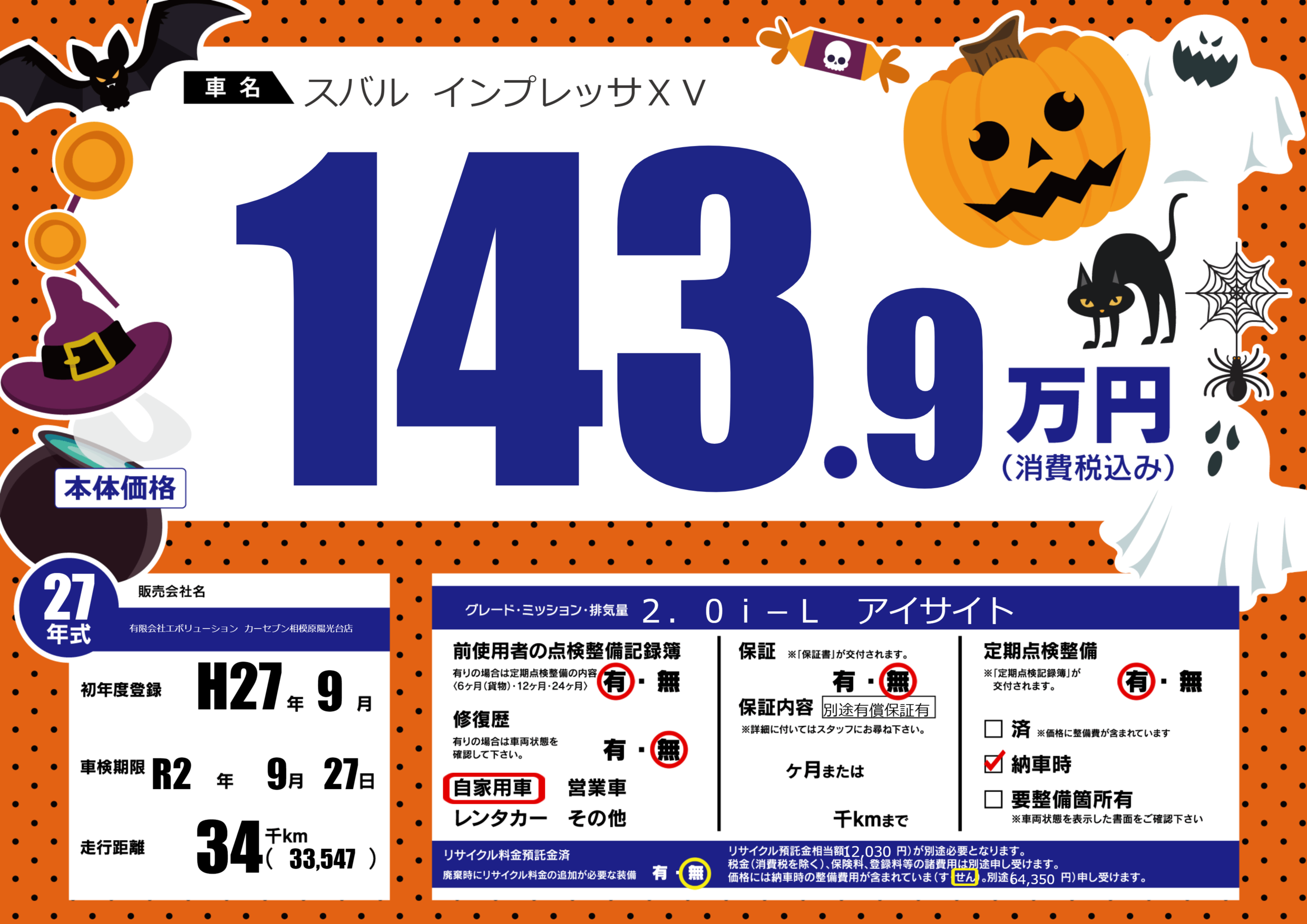 | 車検制限 | R2年 9月 27日 | ||