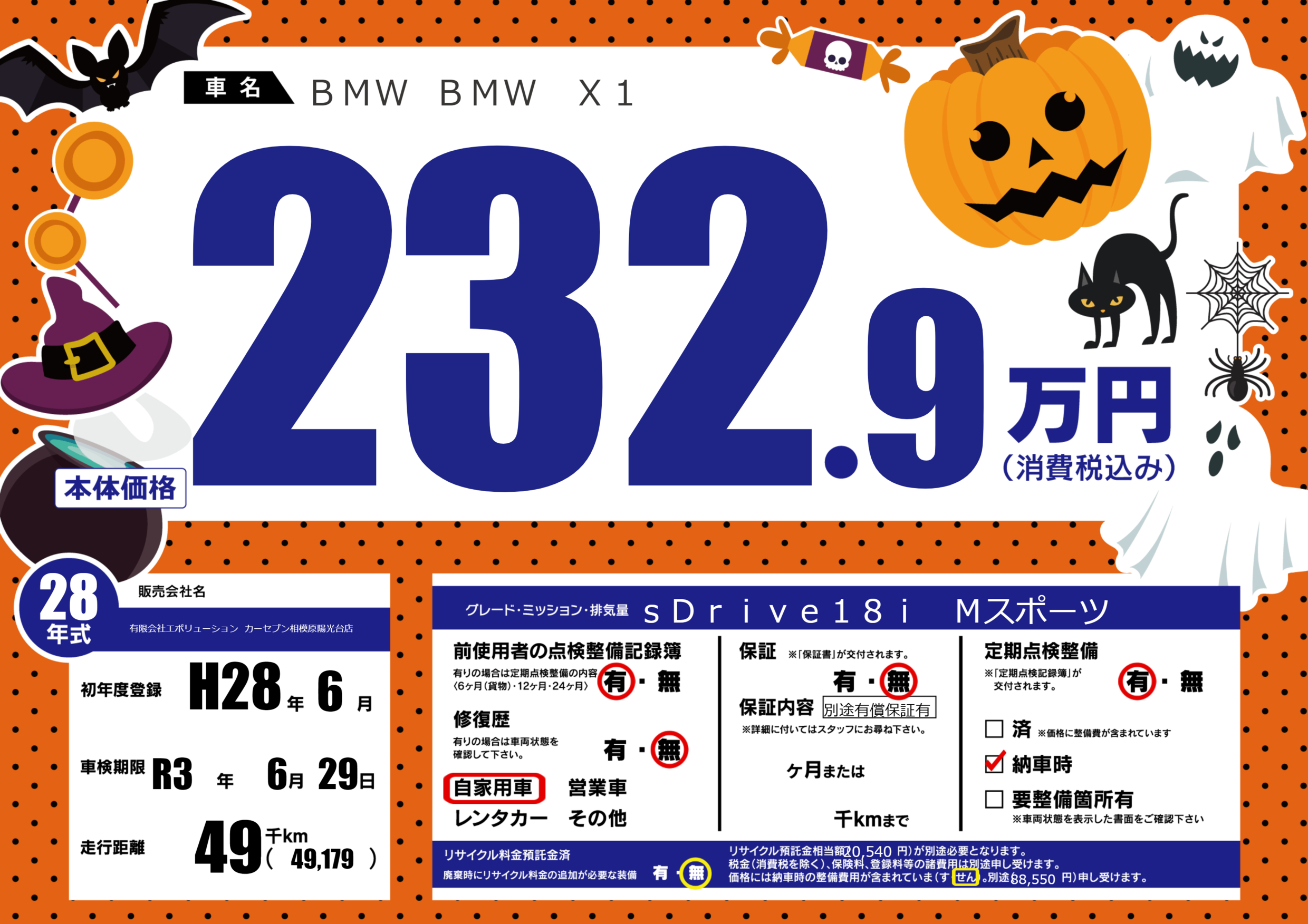 | 車名 | BMW BMW X1 | グレード ミッション 排気量 |