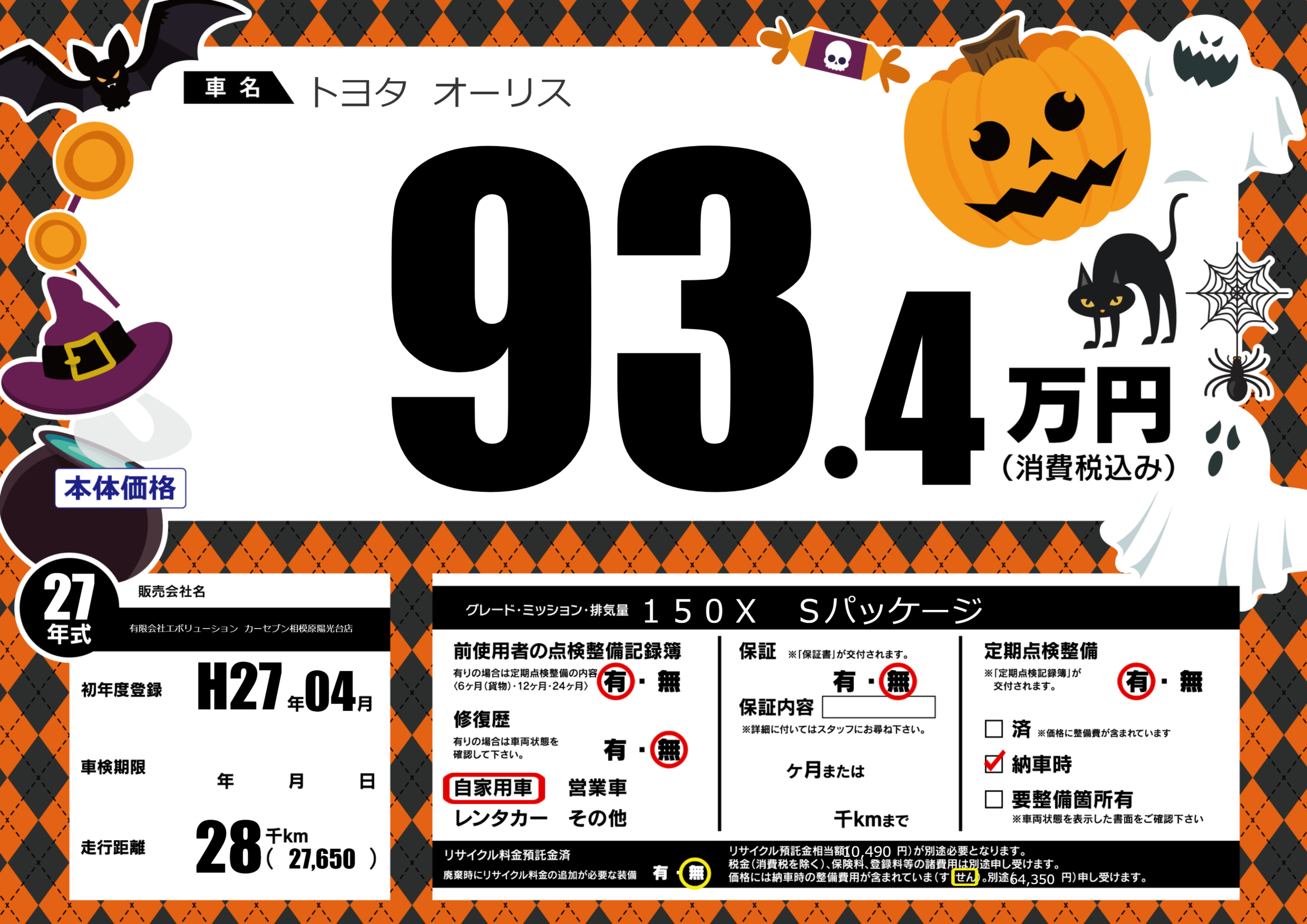 | 定期点検整備 | 定期点検整備あり 納車時あり | ||