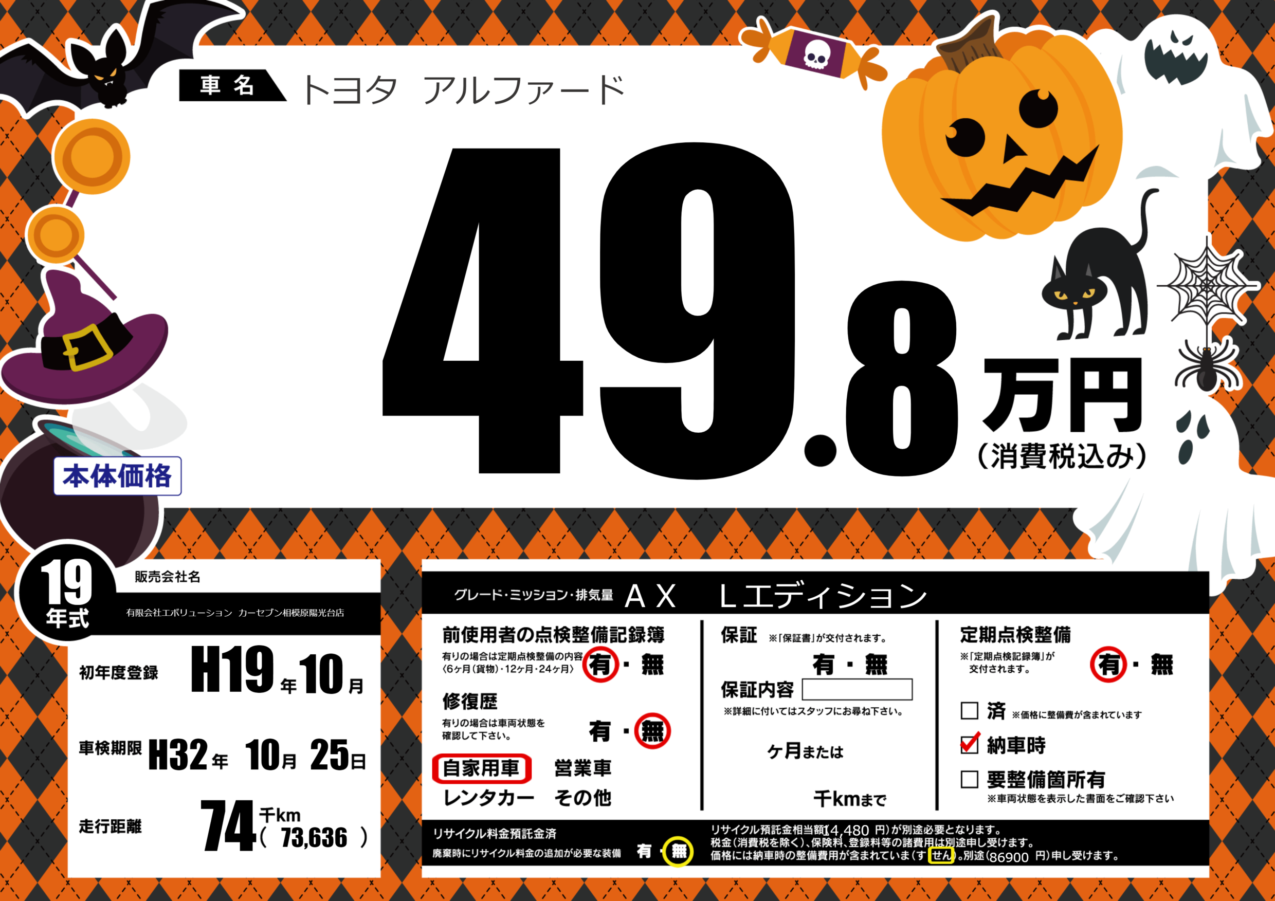車検制限 H32年 10月 25日