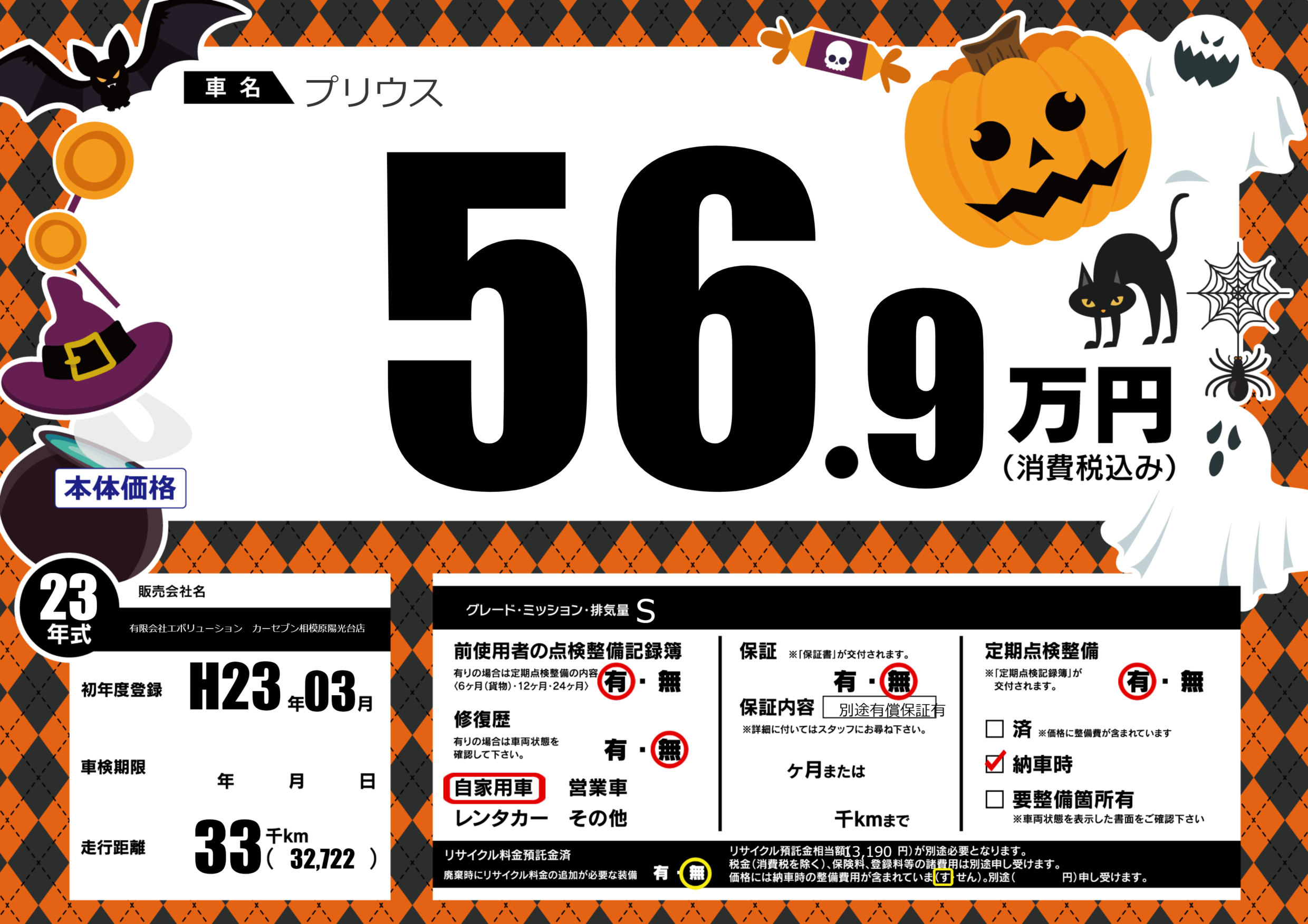 | 走行キロ | 3.3万km | 初年度登録 | H23年03月 |
