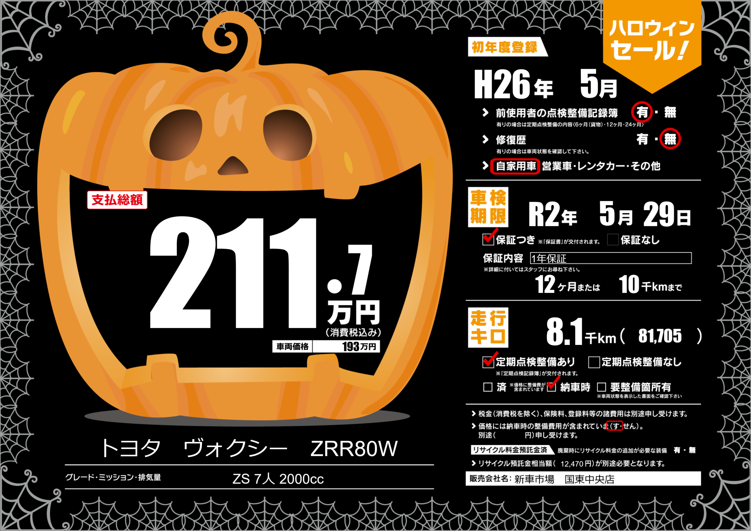 保証付き 保証内容(1年保証) 12ヶ月または(10)千kmまで |
