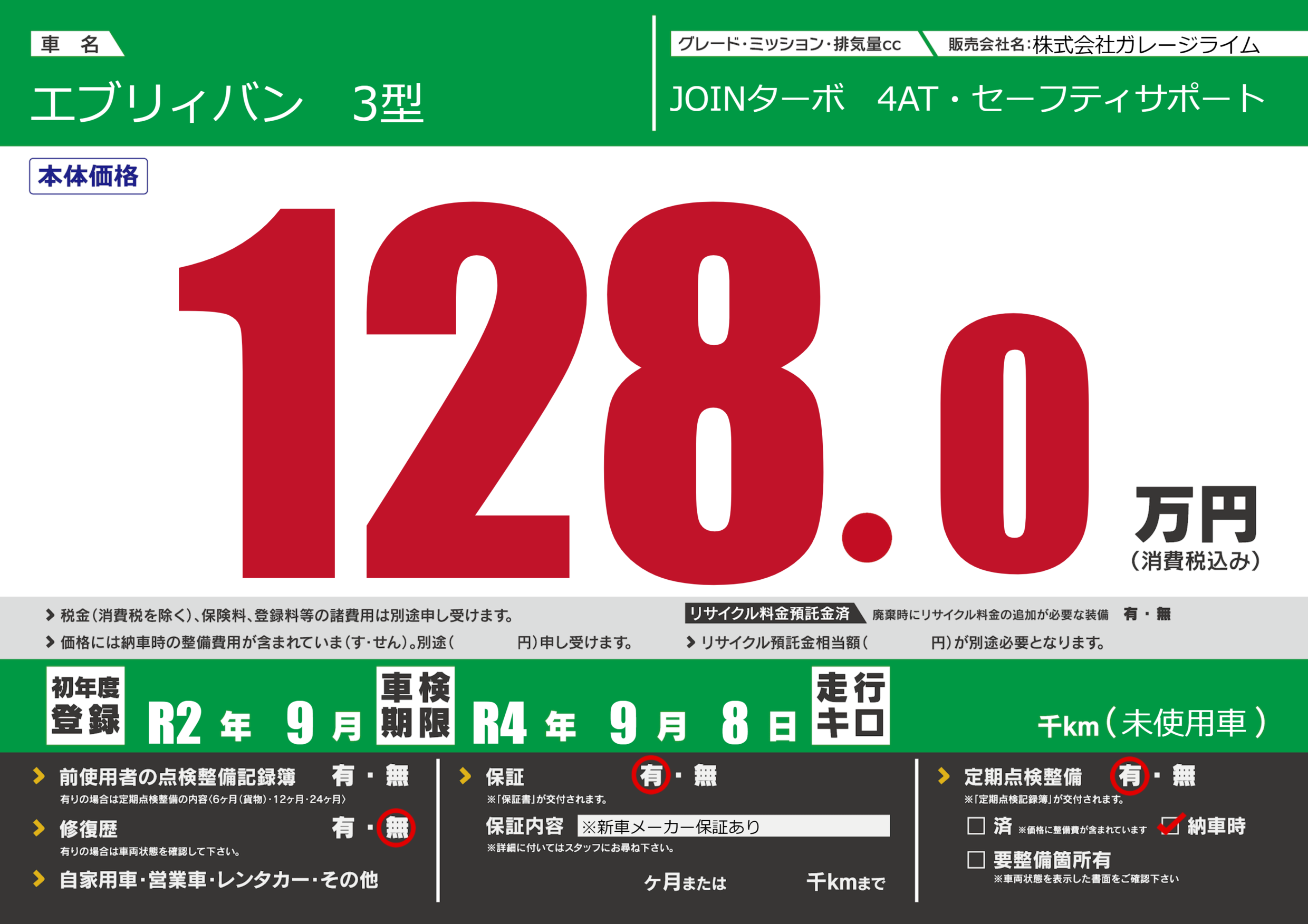 なし | 車検制限 | R4年9月8月 |