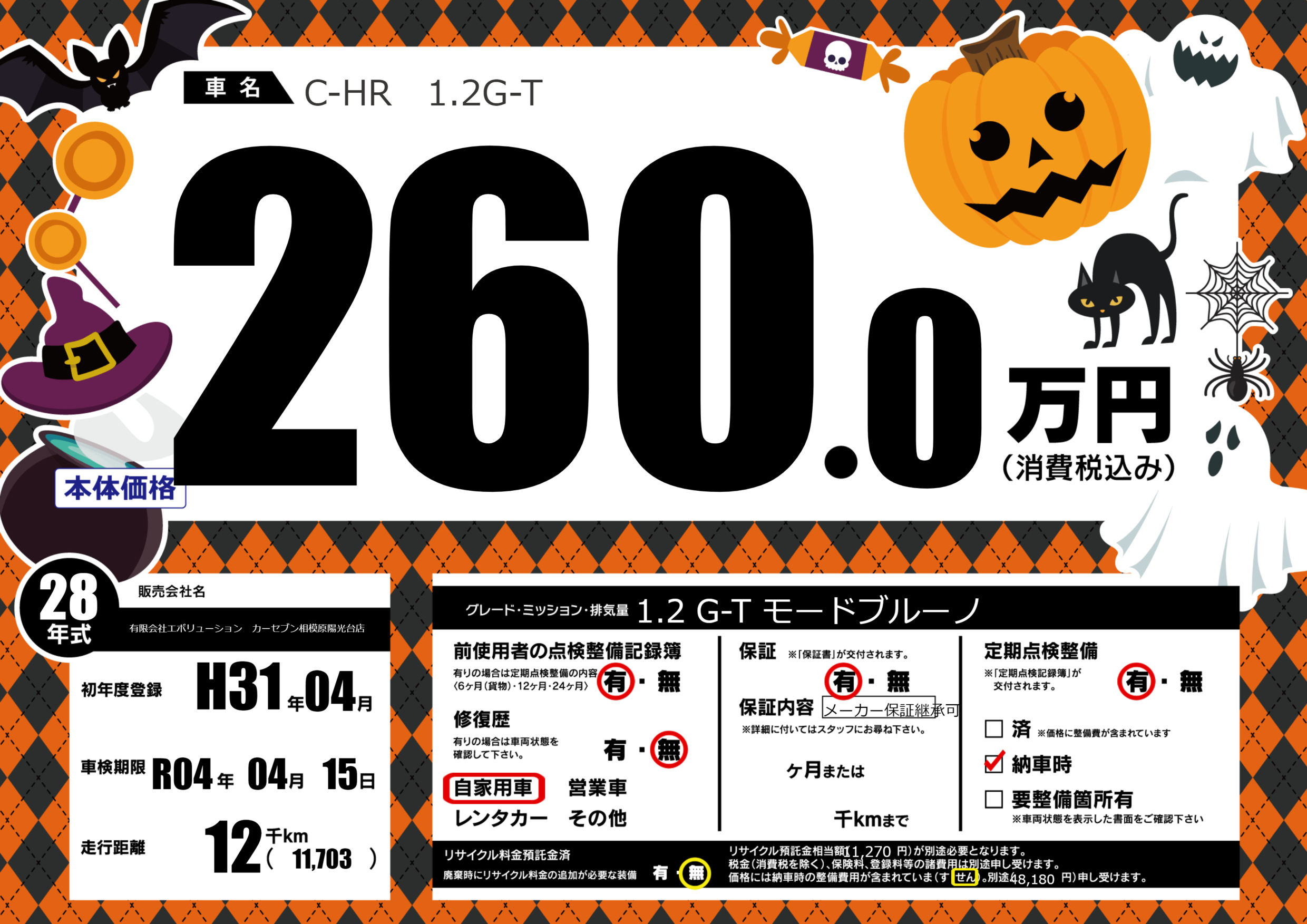 | 車名 | C-HR 1.2G-T | グレード ミッション 排気量 |