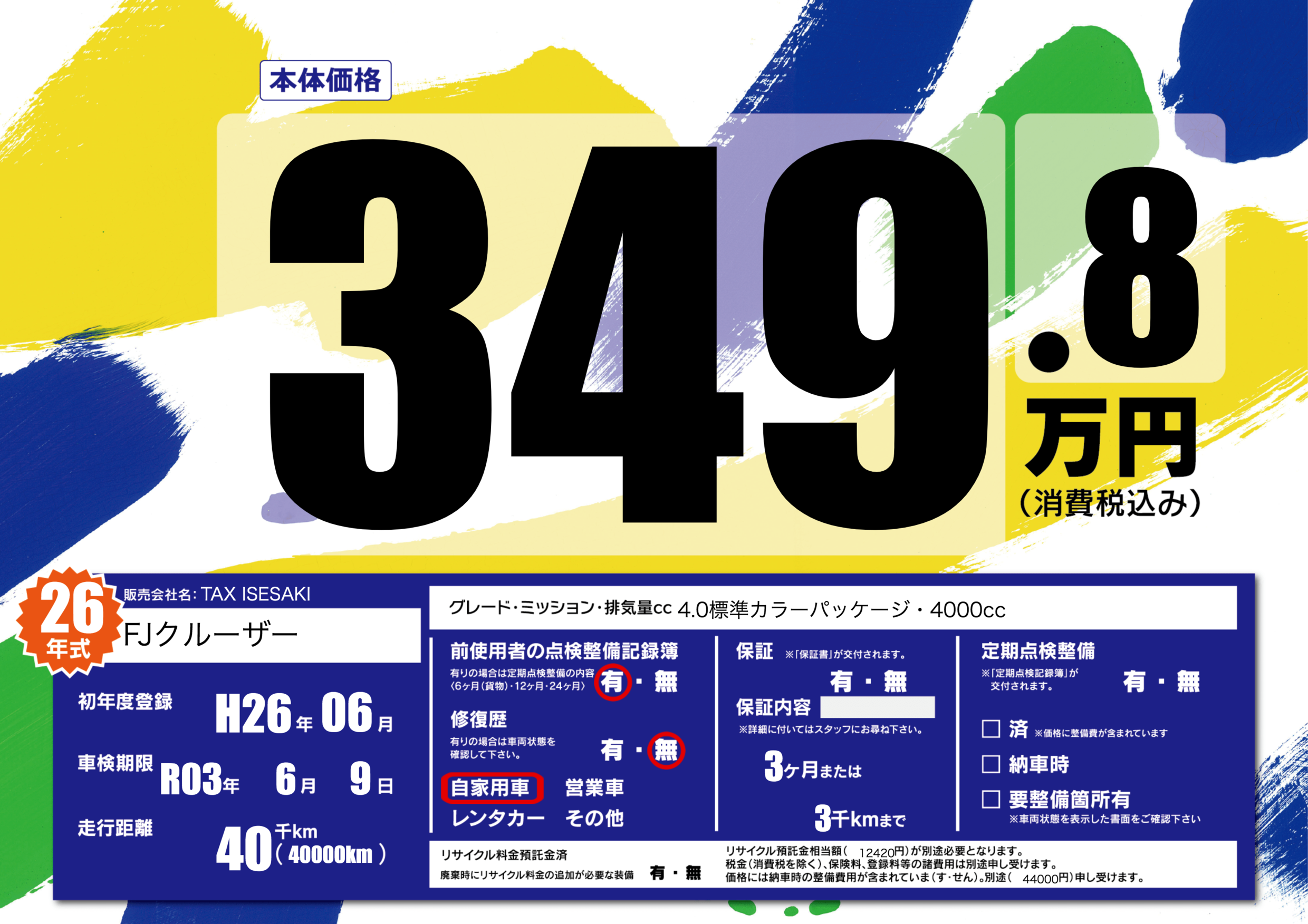 | 走行キロ | 4万km | 初年度登録 | H26年06月 |