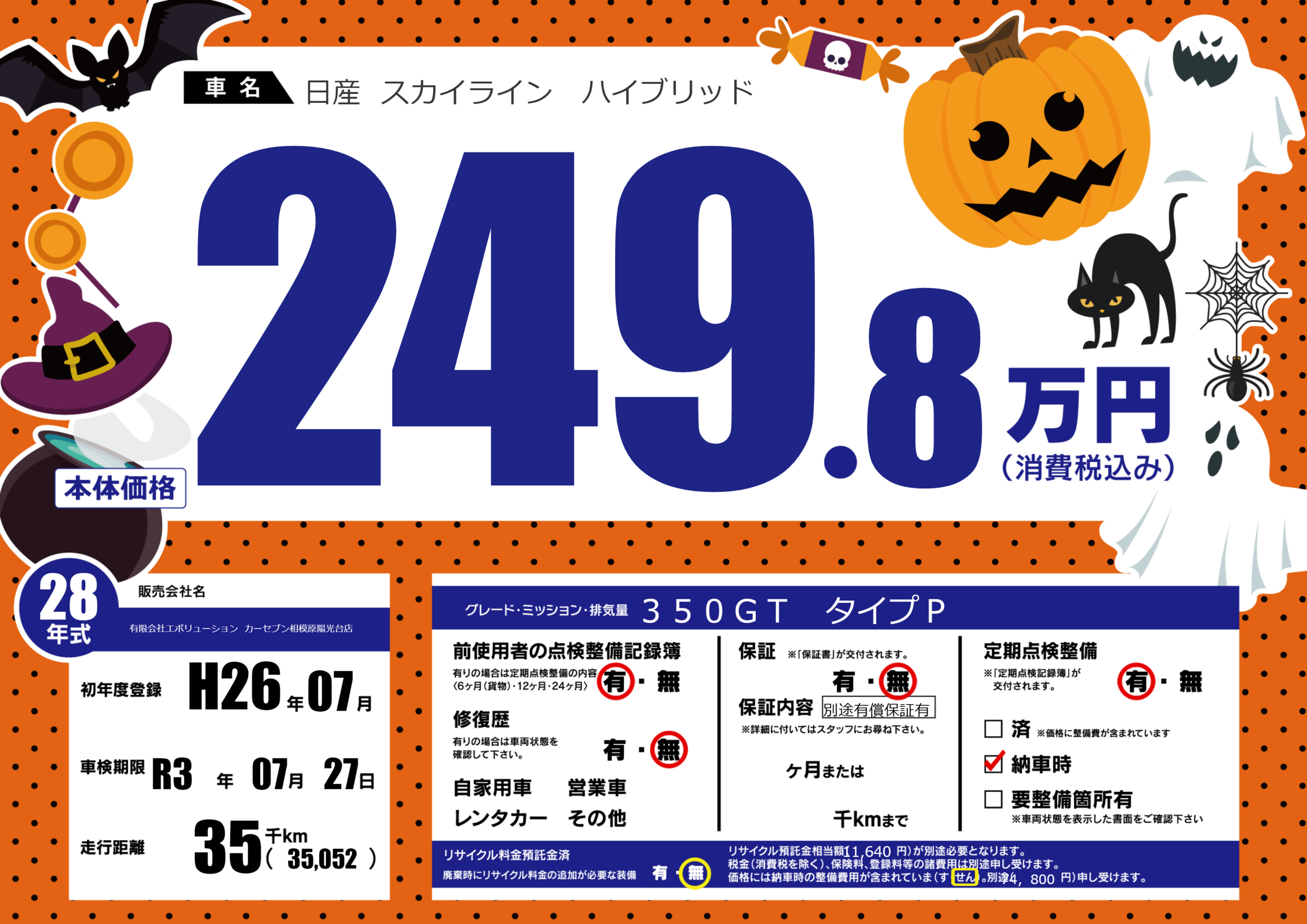 | 走行キロ | 3.5万km | 初年度登録 | H26年07月 |