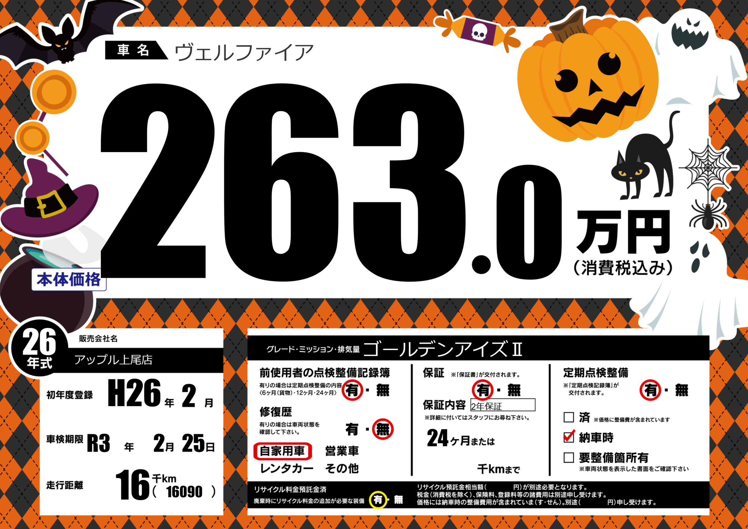 | 走行キロ | 1.6万km | 初年度登録 | H26年2月 |