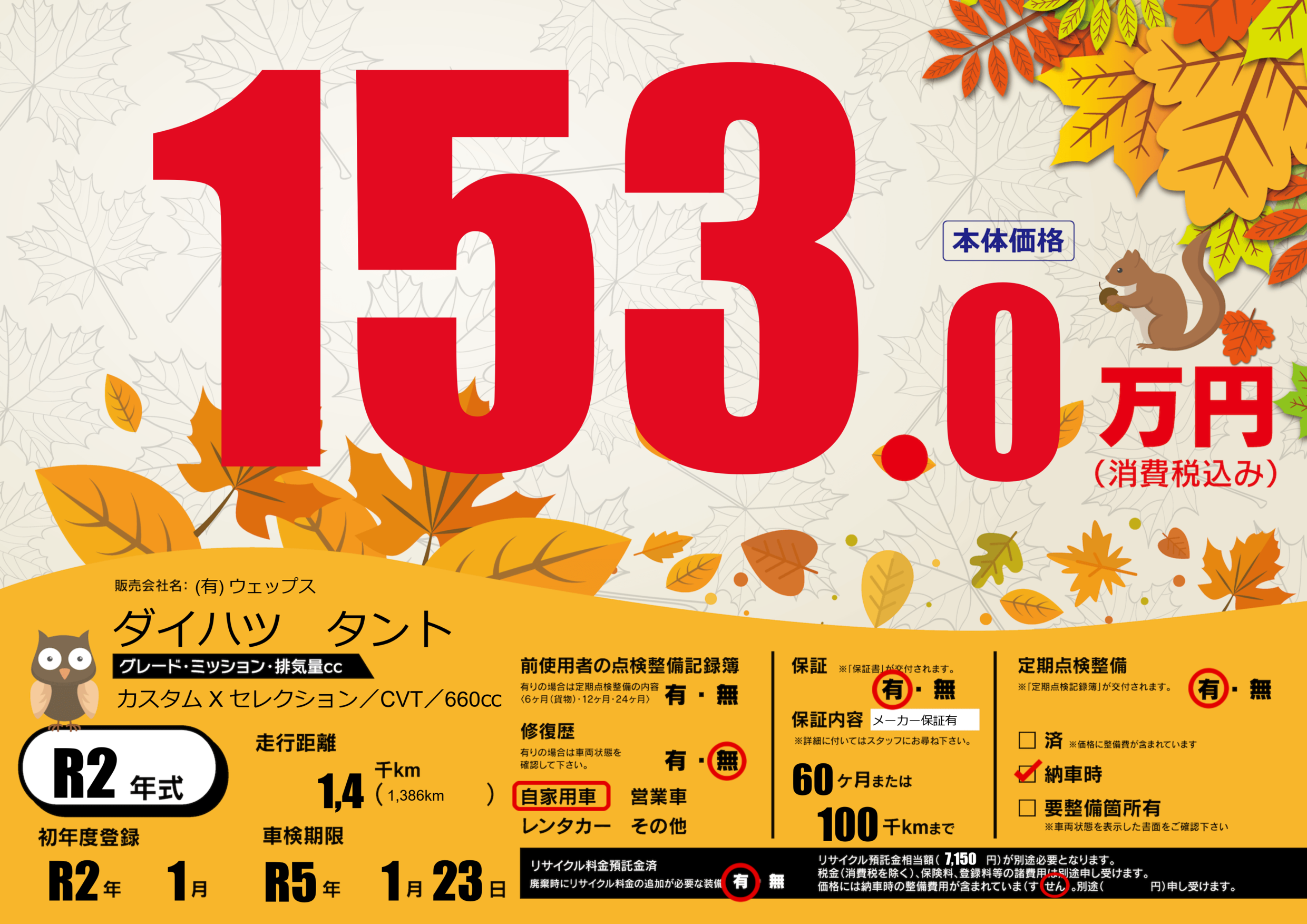 なし | 車検制限 | R5年1月23月 |