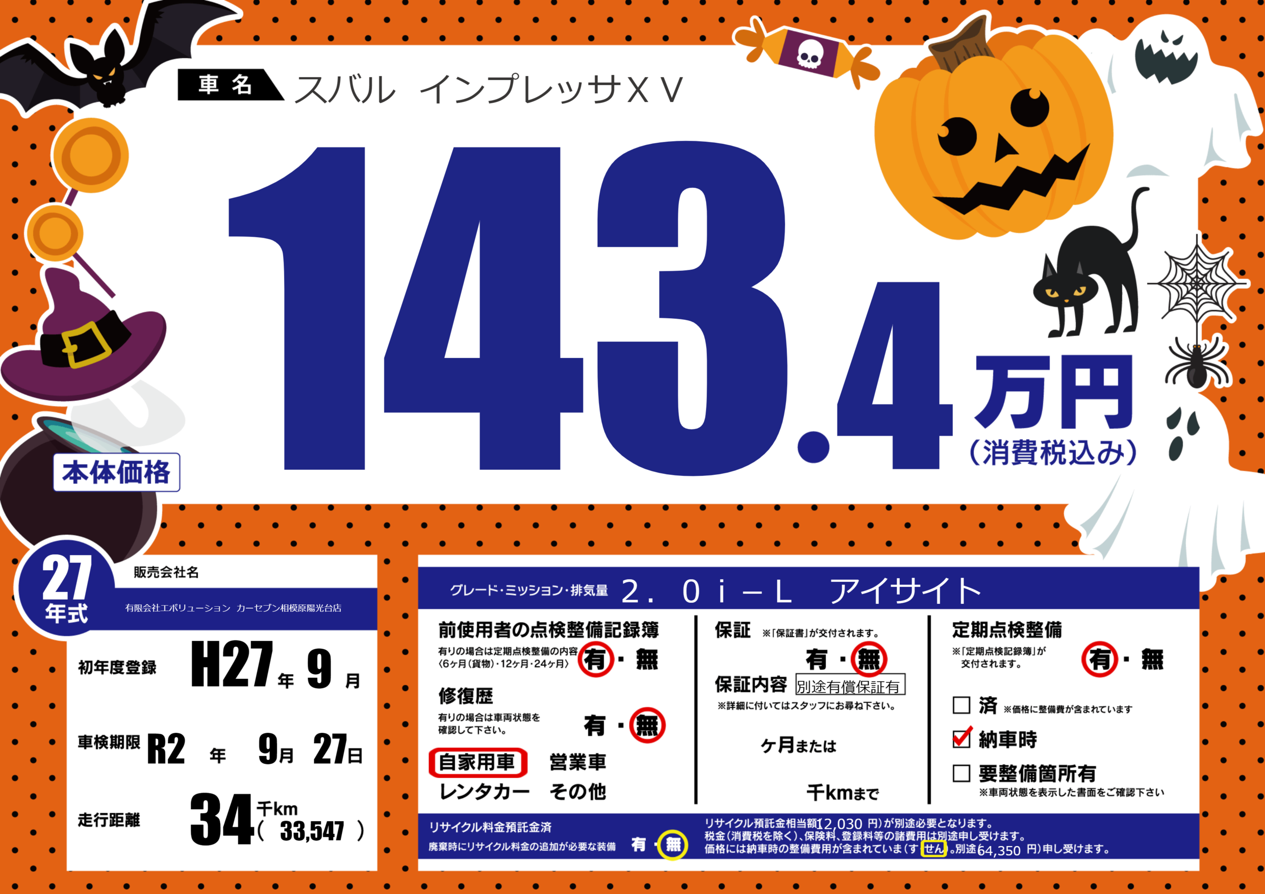 | 車検制限 | R2年 9月 27日 | ||