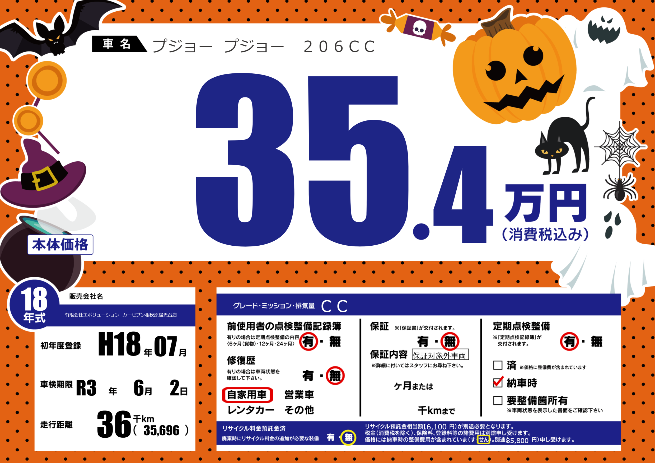 | 走行キロ | 3.6万km | 初年度登録 | H18年07月 |