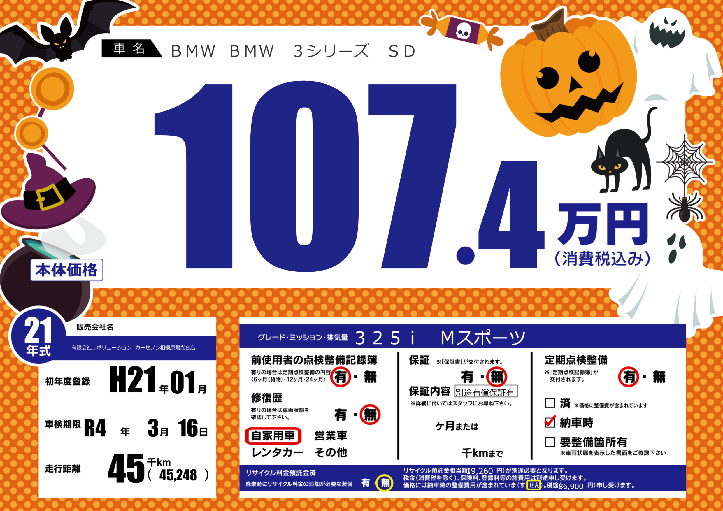| 車名 | BMW BMW 3シリーズ SD | グレード ミッション 排気量 |