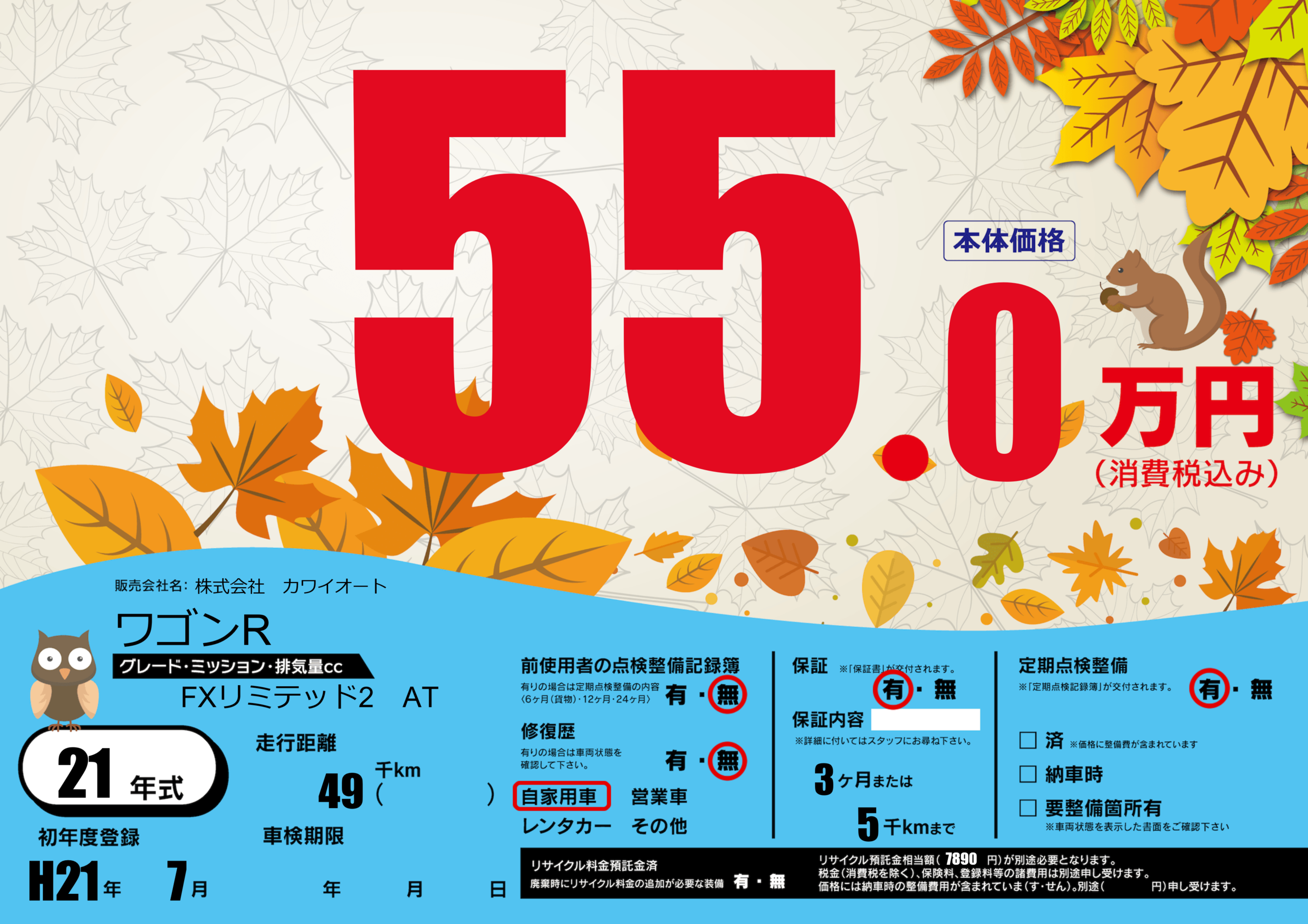 | 車名 | ワゴンR | グレード ミッション 排気量 |