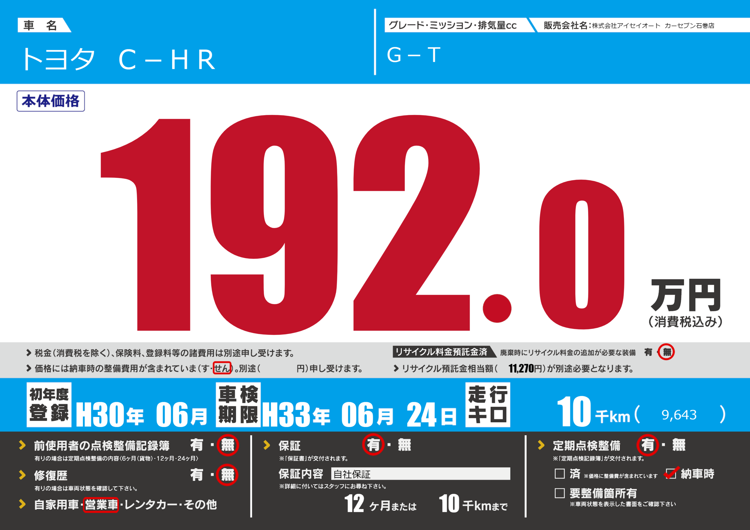 保証付き 保証内容(自社保証) 12ヶ月または(10)千kmまで |