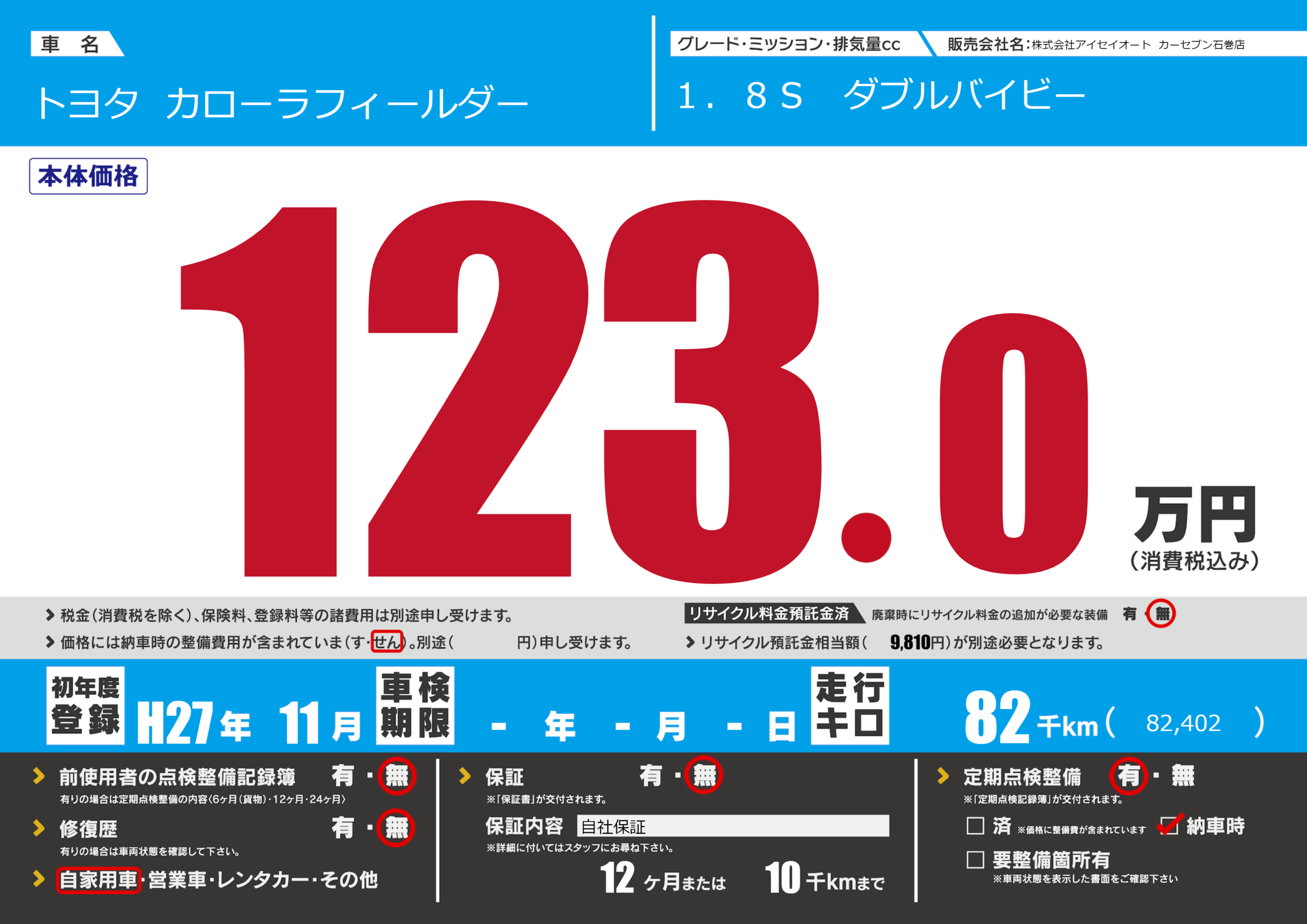 | 走行キロ | 8.2万km | ||