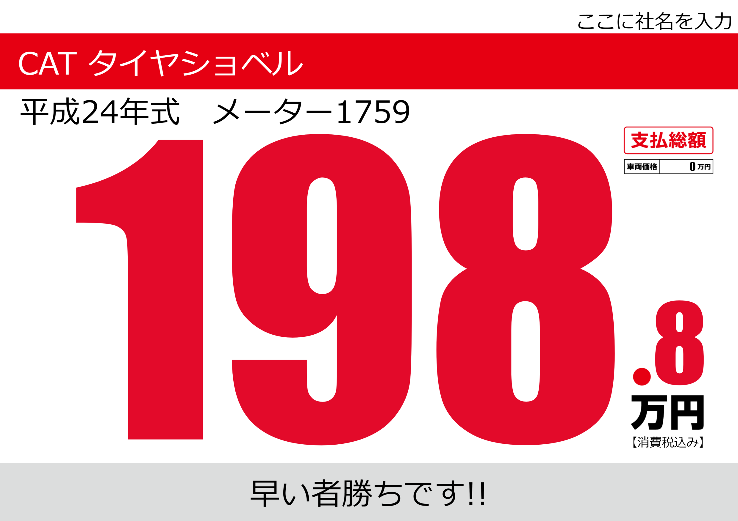 | 車名 | CAT タイヤショベル | グレード ミッション 排気量 |
