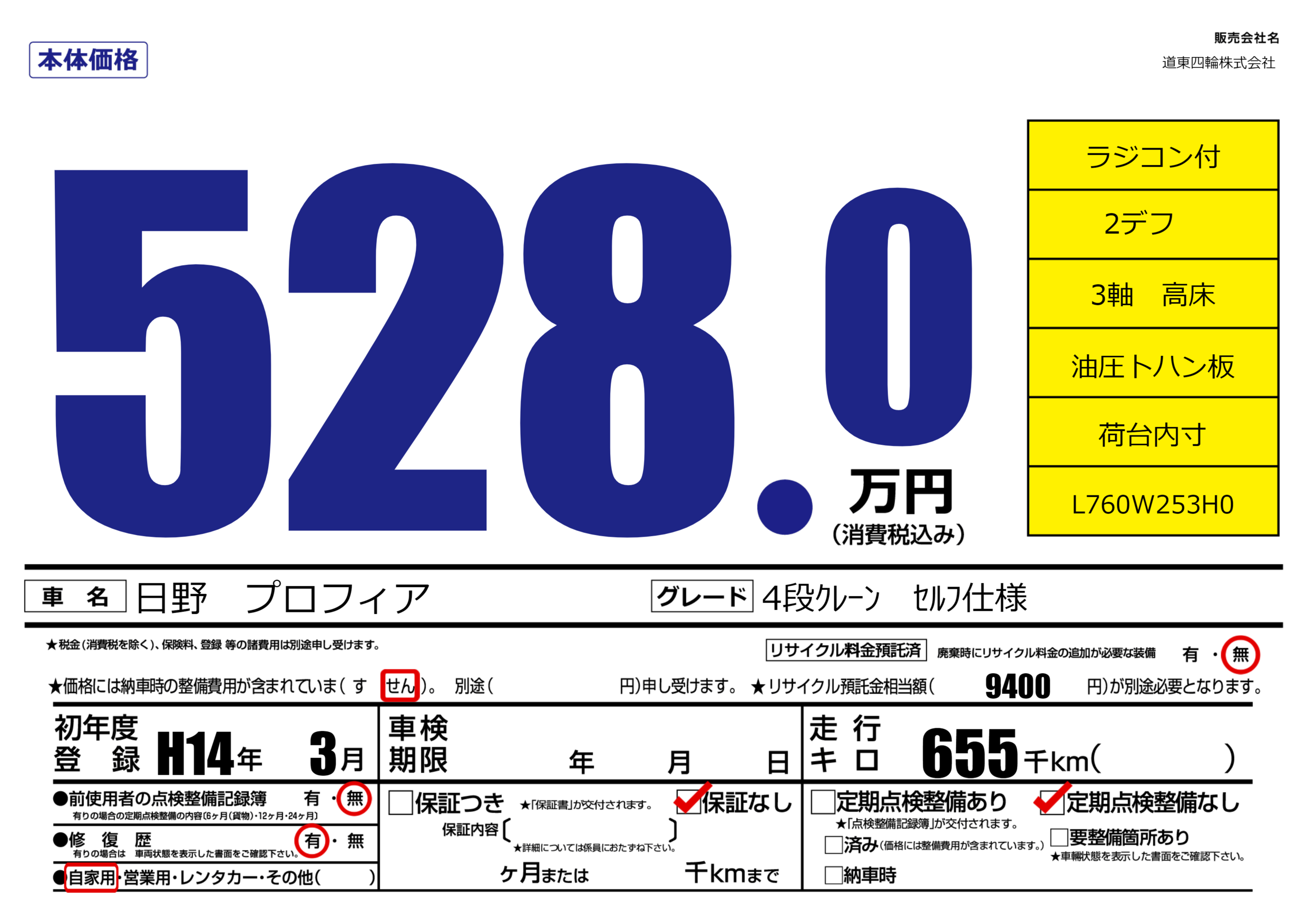 道東四輪(株) 北海道中古トラックスタイルの展示車