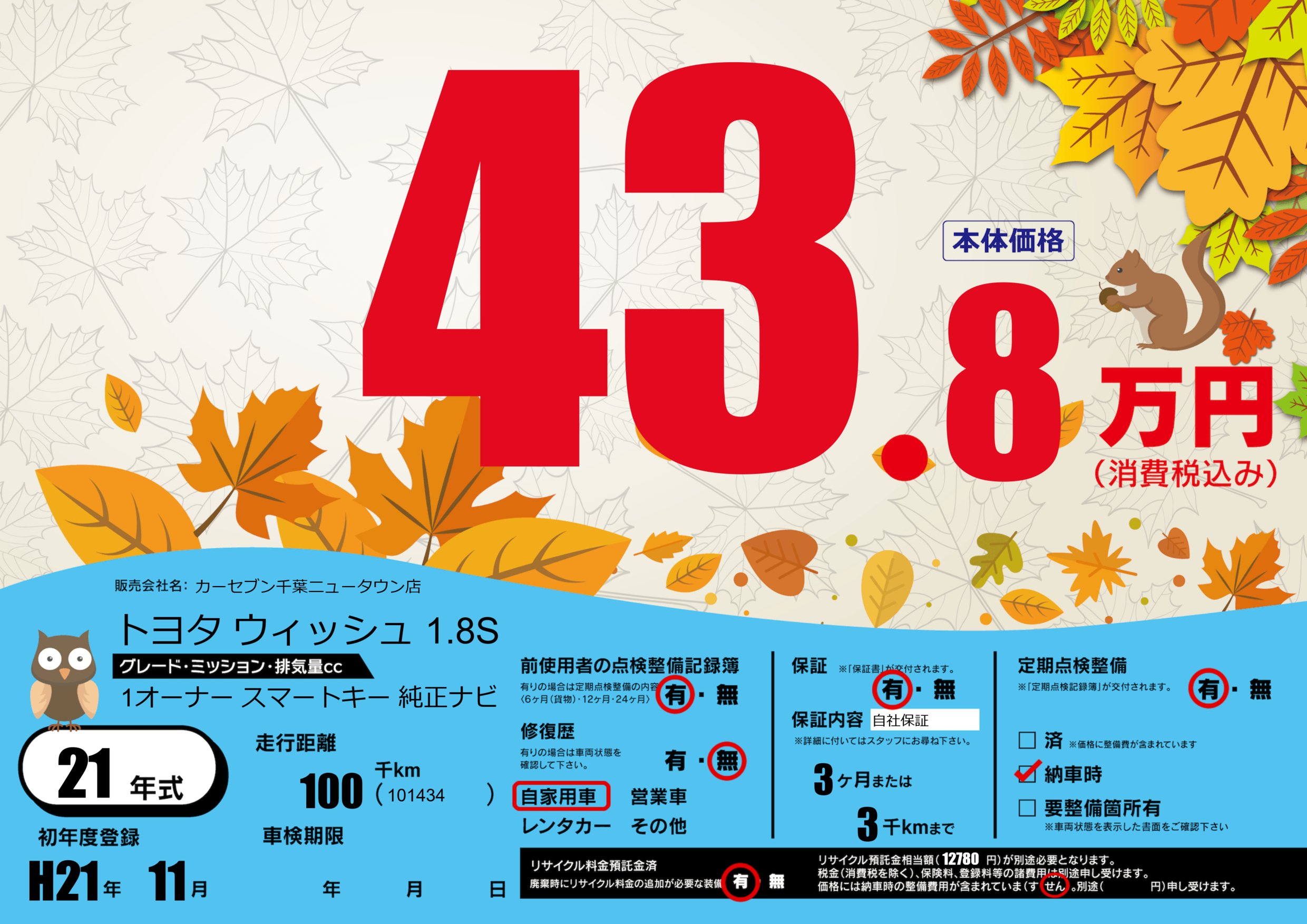 保証付き 保証内容(自社保証) 3ヶ月または3千km |