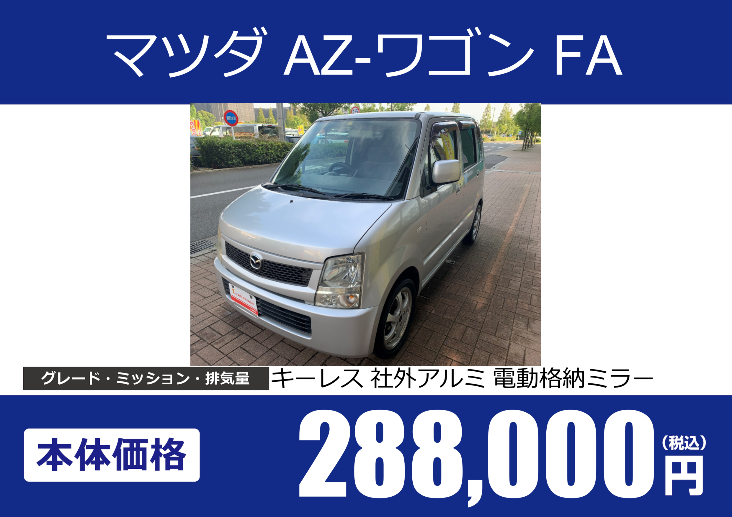 | 車名 | マツダ AZ-ワゴン FA | グレード ミッション 排気量 |