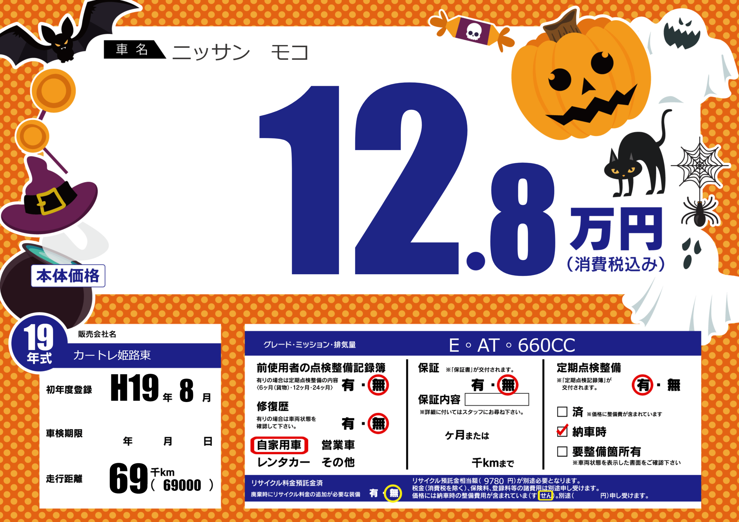 | 定期点検整備 | 定期点検整備あり 納車時あり | ||