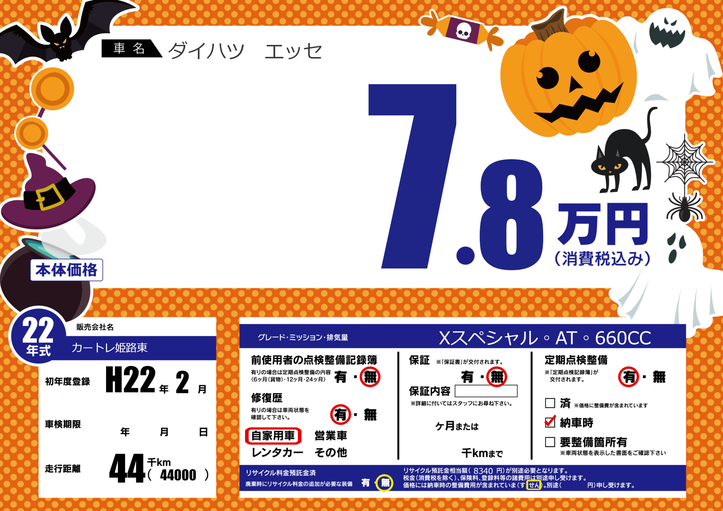 | 走行キロ | 4.4万km | 初年度登録 | H22年2月 |