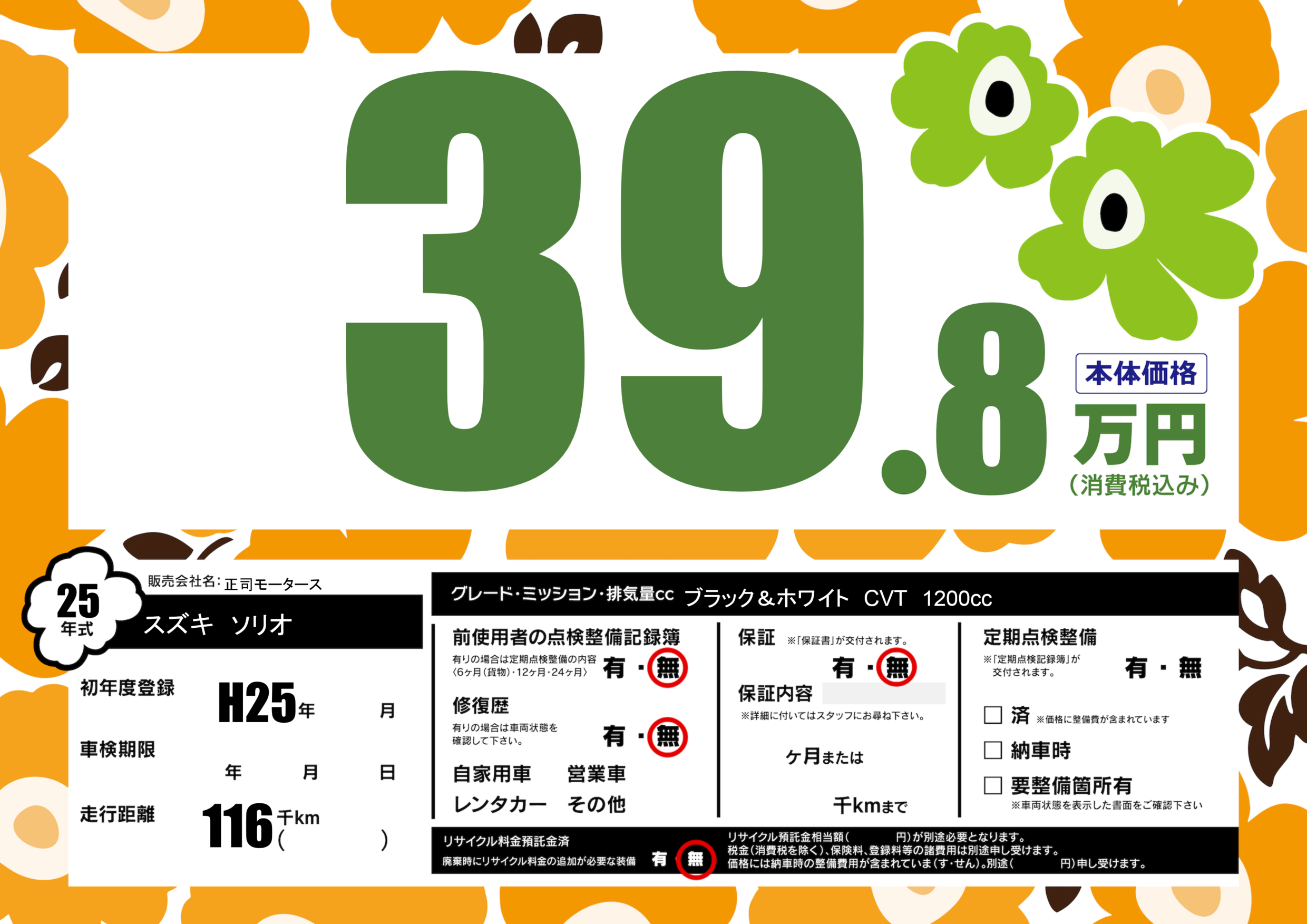| 車名 | スズキ ソリオ | グレード ミッション 排気量 |