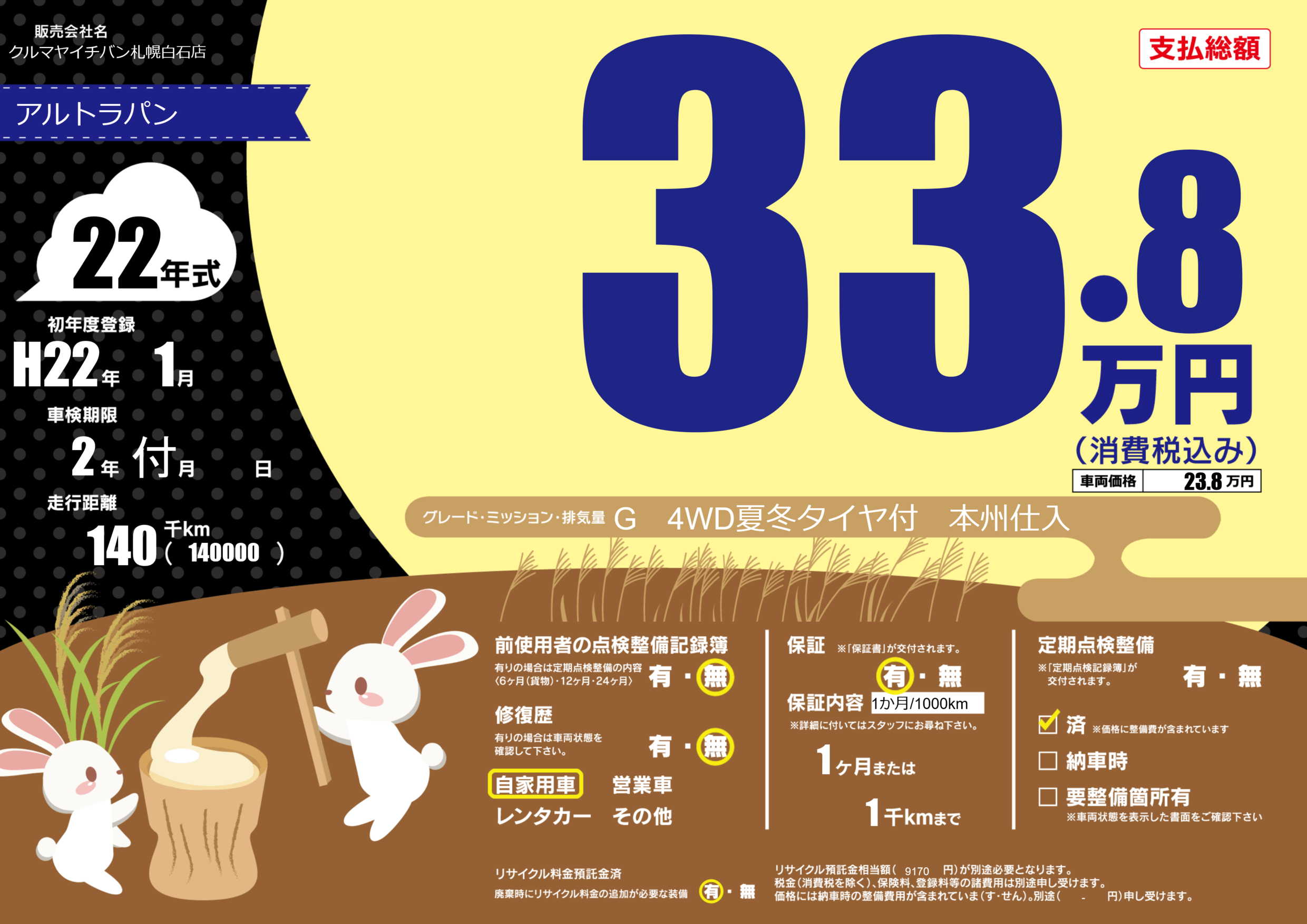 | 車名 | アルトラパン | グレード ミッション 排気量 |