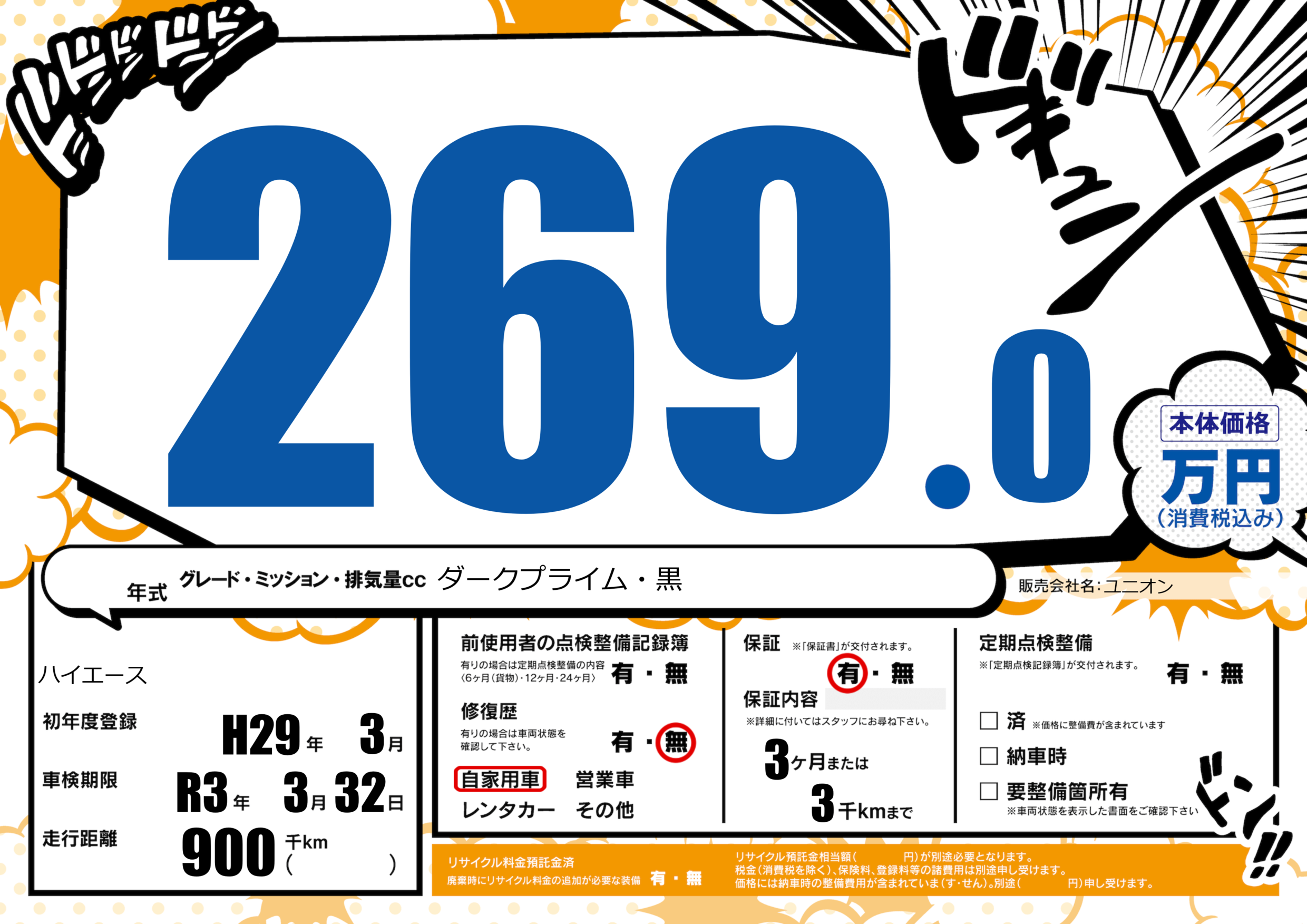 | 走行キロ | 90万km | 初年度登録 | H29年3月 |