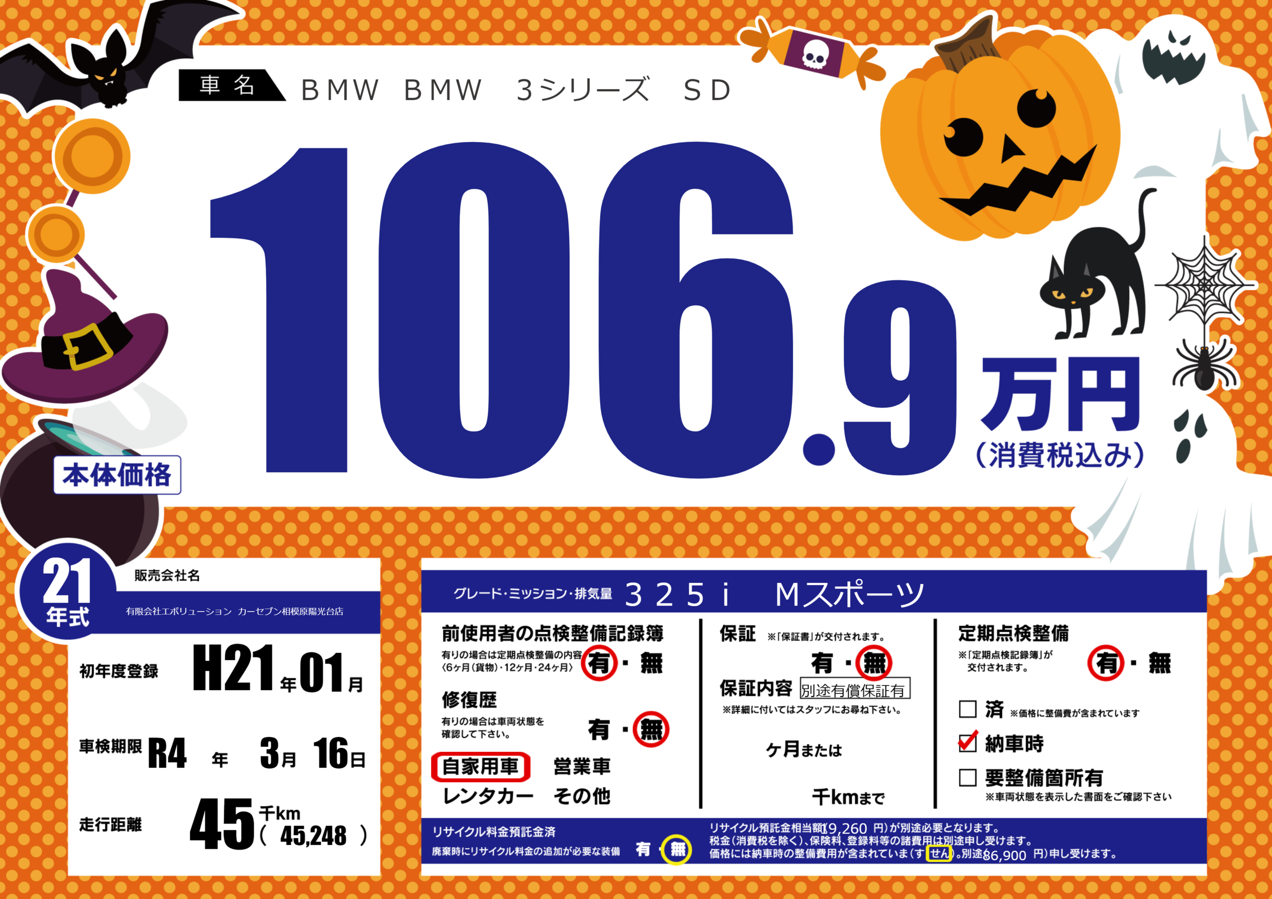 | 車名 | BMW BMW 3シリーズ SD | グレード ミッション 排気量 |