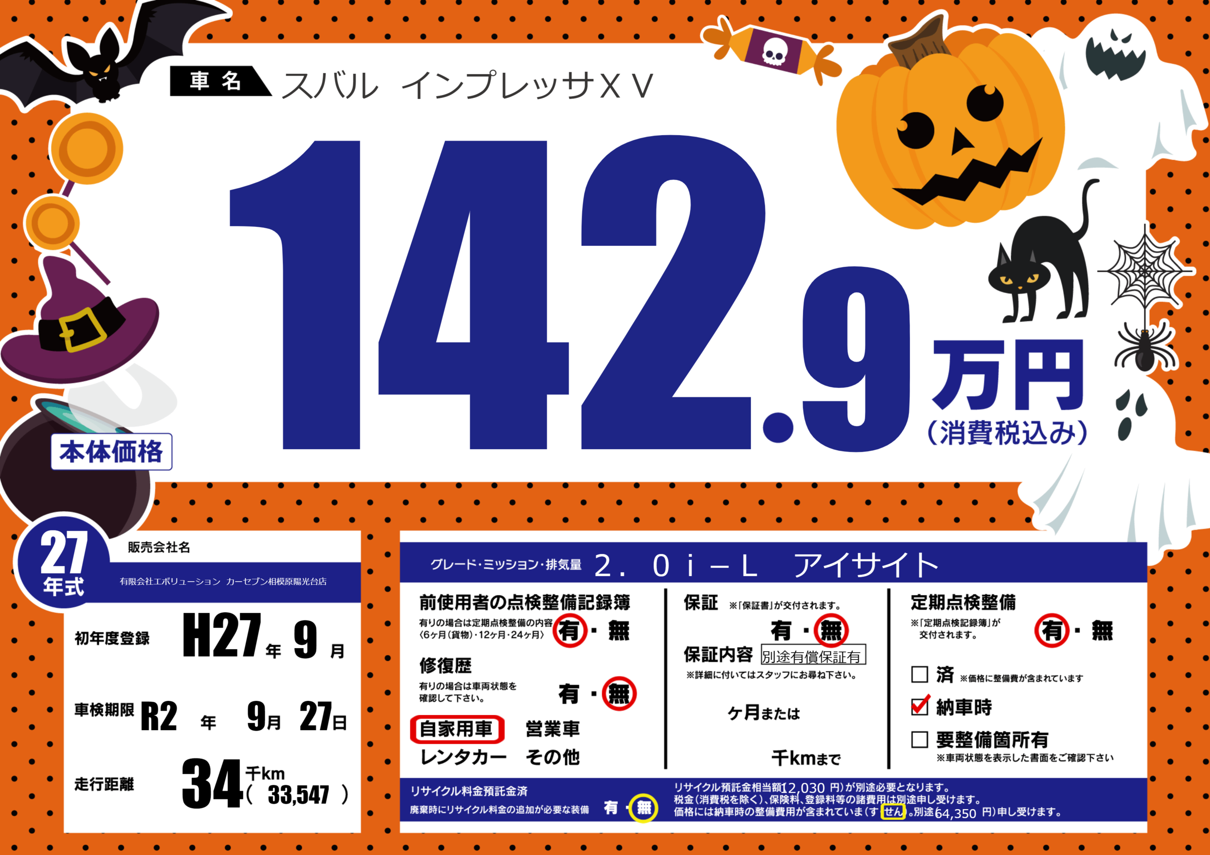 | 車検制限 | R2年 9月 27日 | ||
