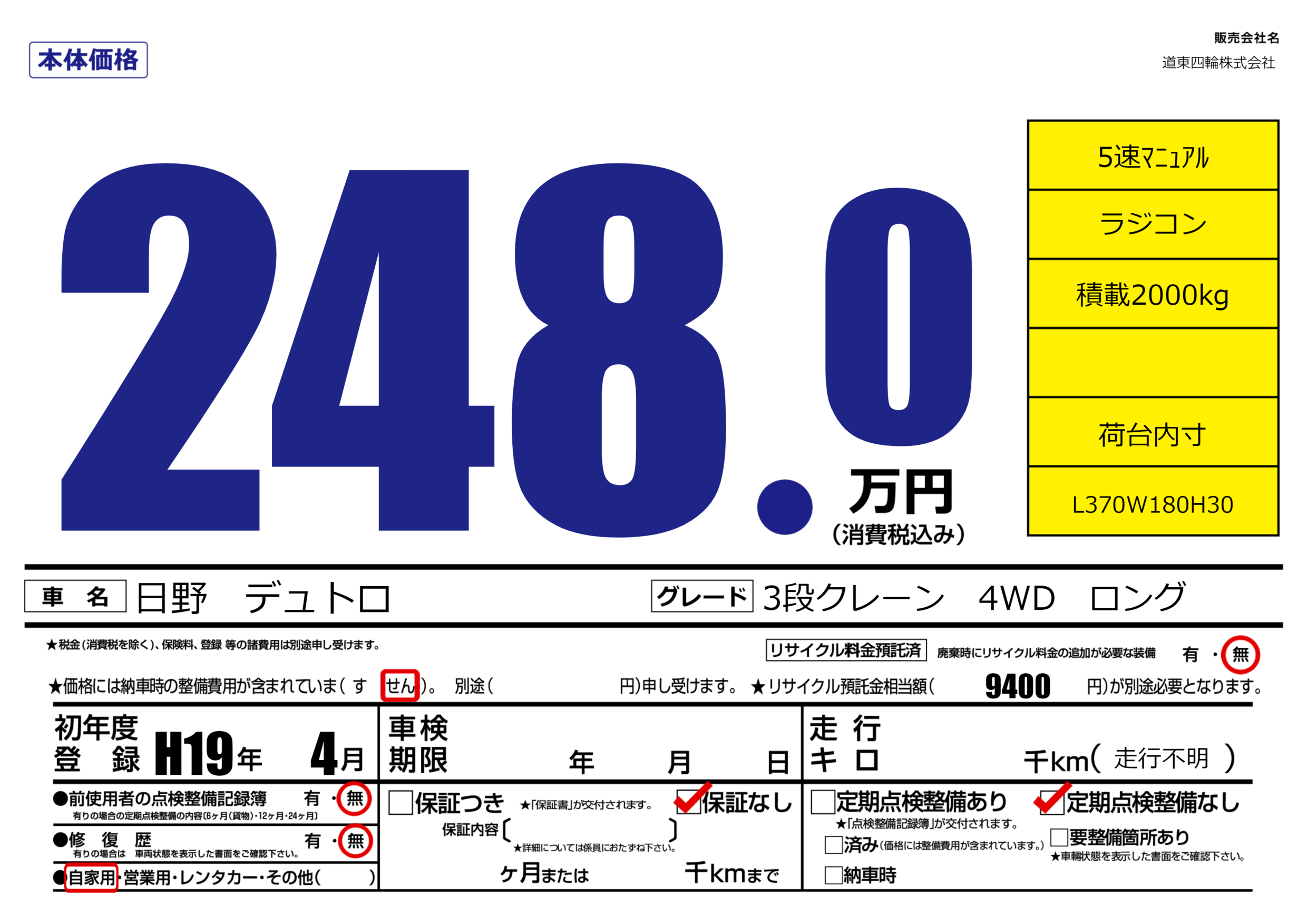 | 走行キロ | - | 初年度登録 | H19年4月 |