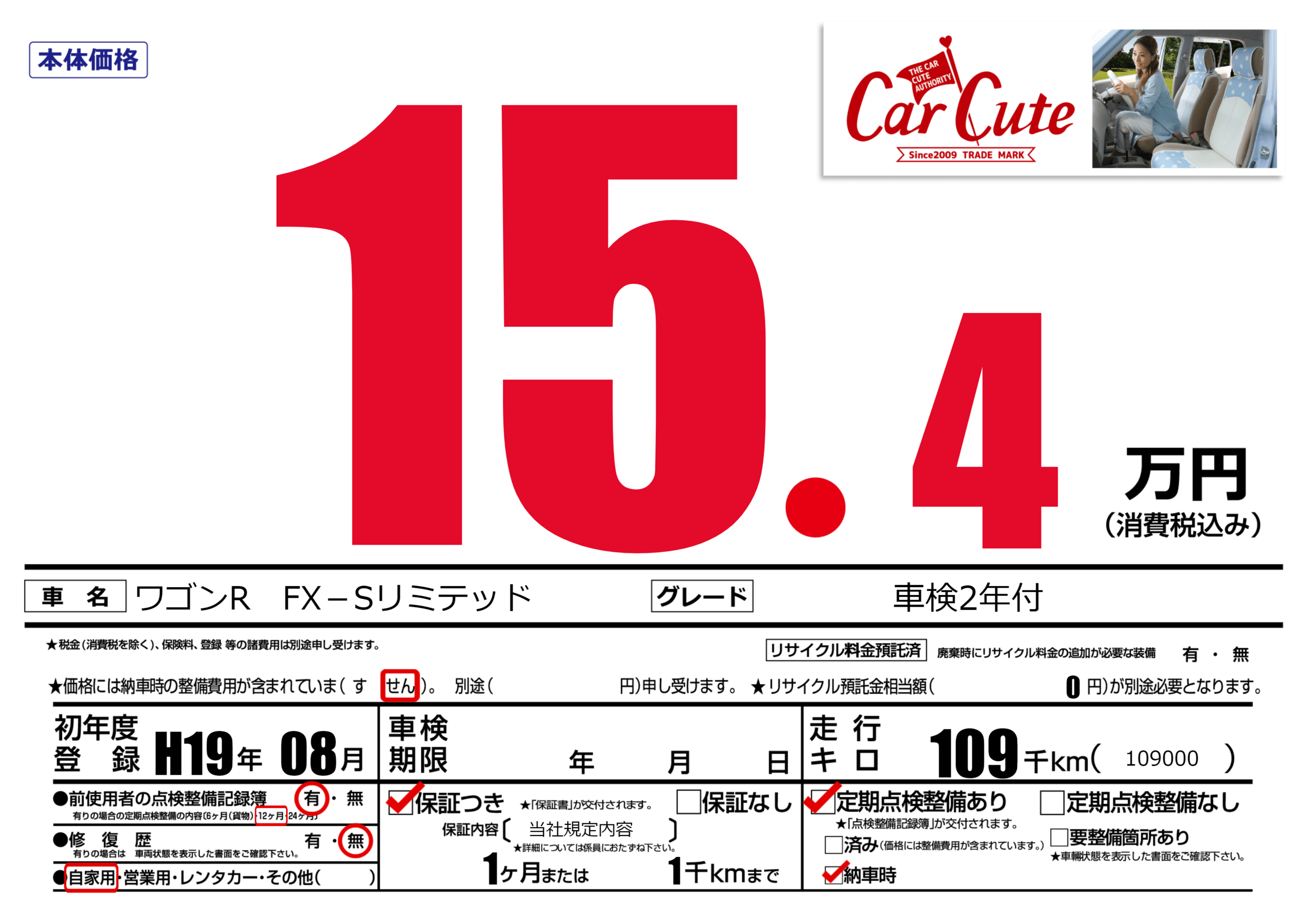 | 車名 | ワゴンR FX-Sリミテッド | グレード ミッション 排気量 |