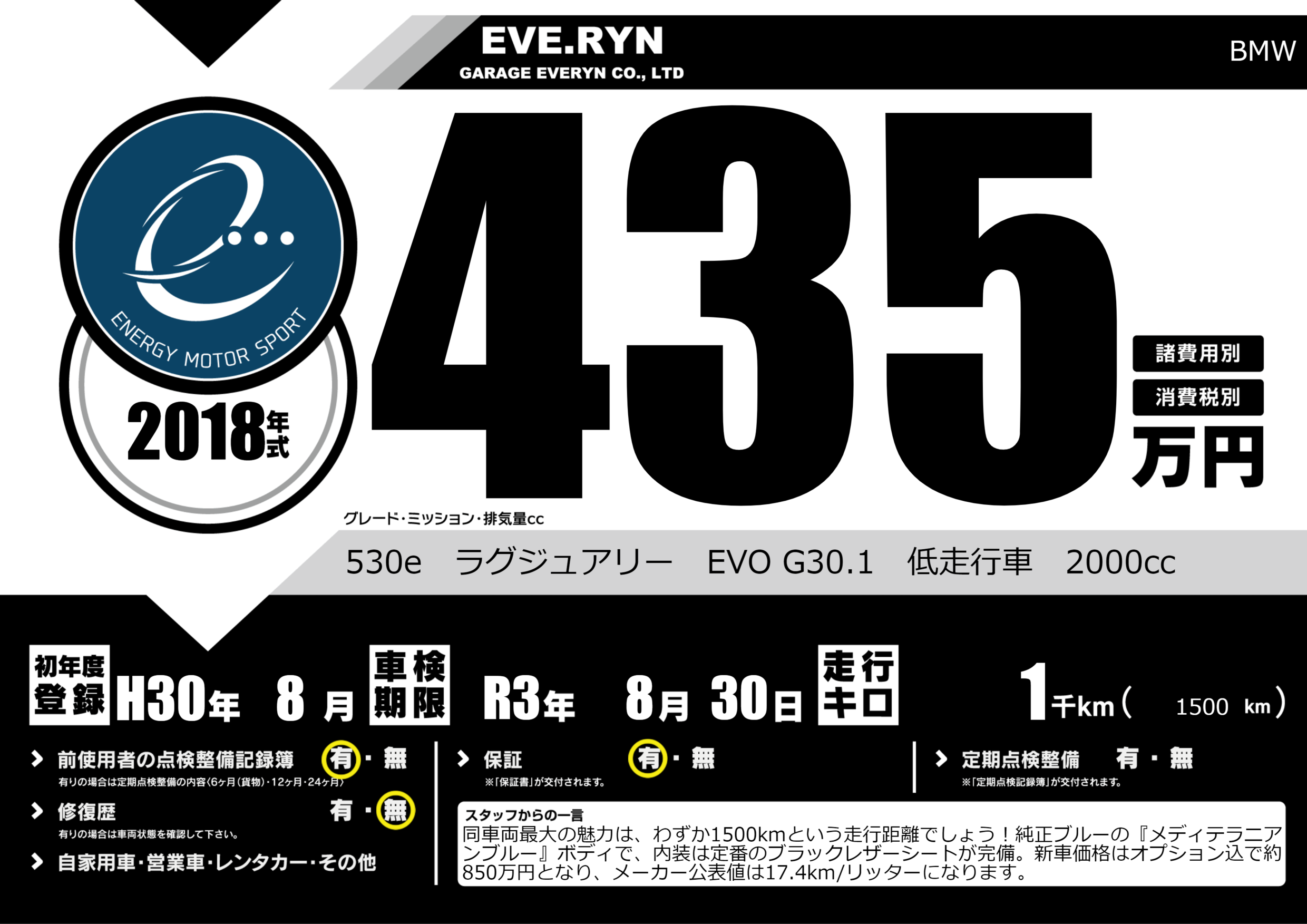 530e ラグジュアリー EVO G30.1 低走行車 2000cc |