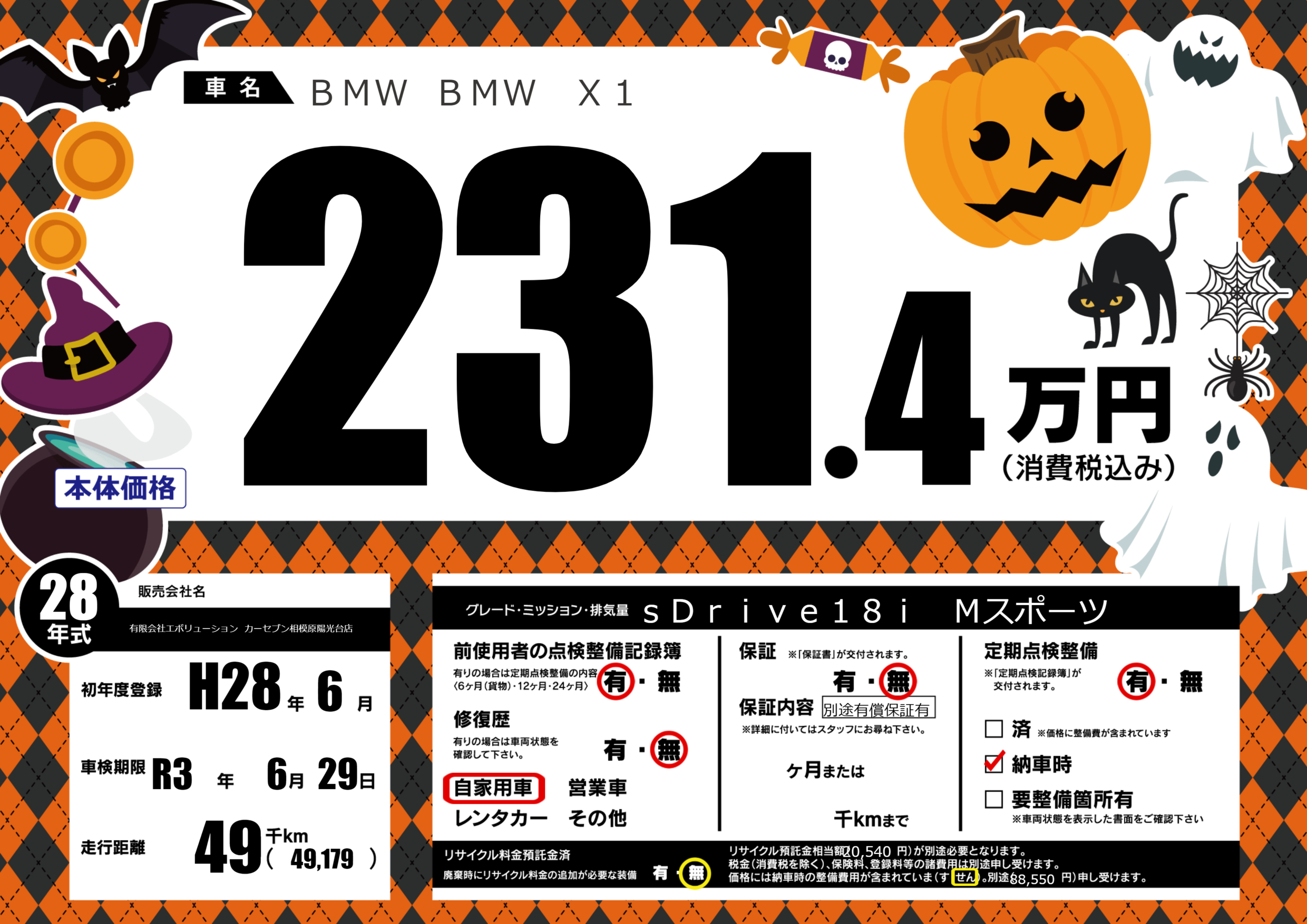 | 車名 | BMW BMW X1 | グレード ミッション 排気量 |