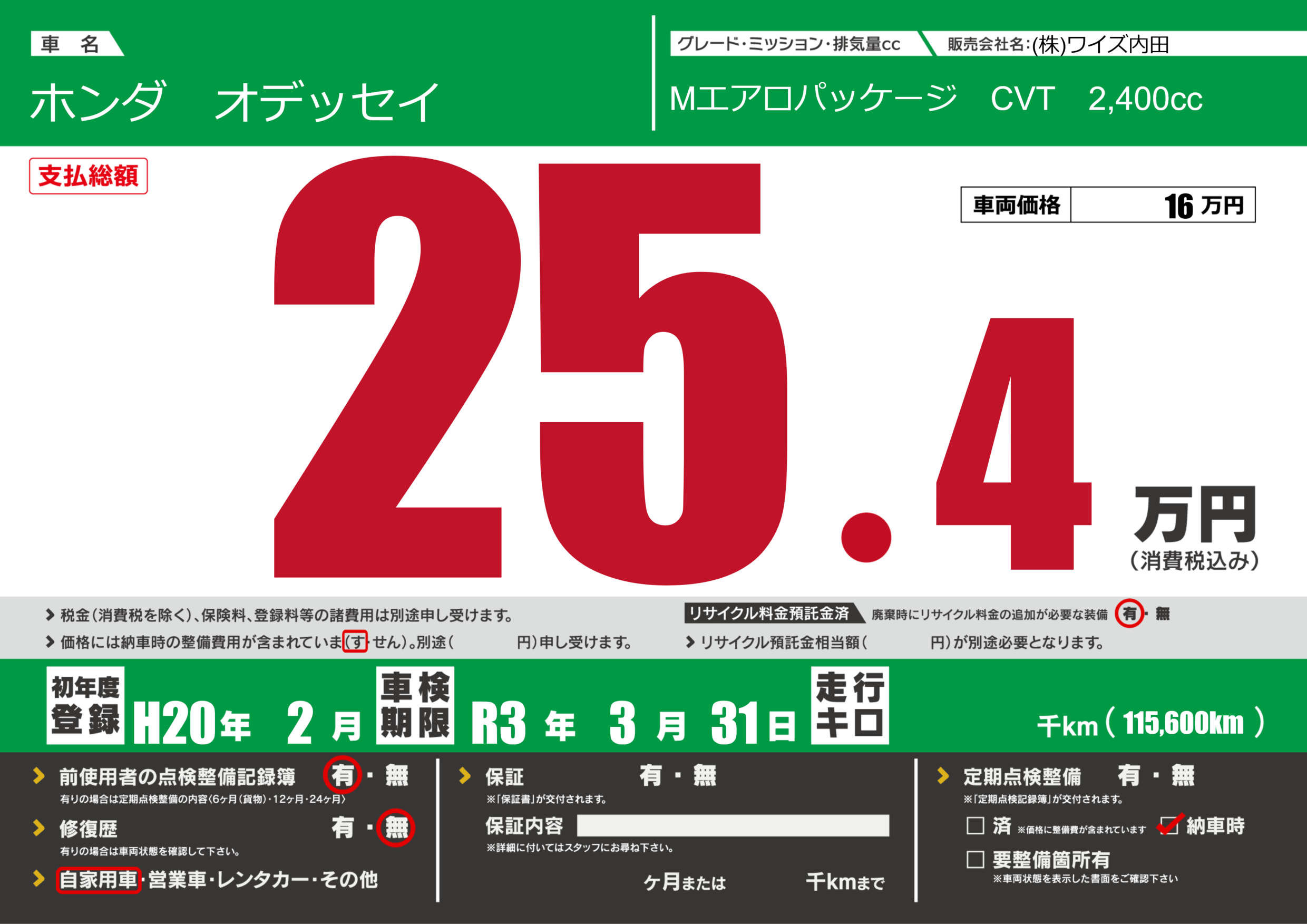 | 車検制限 | R3年 3月 31日 | ||