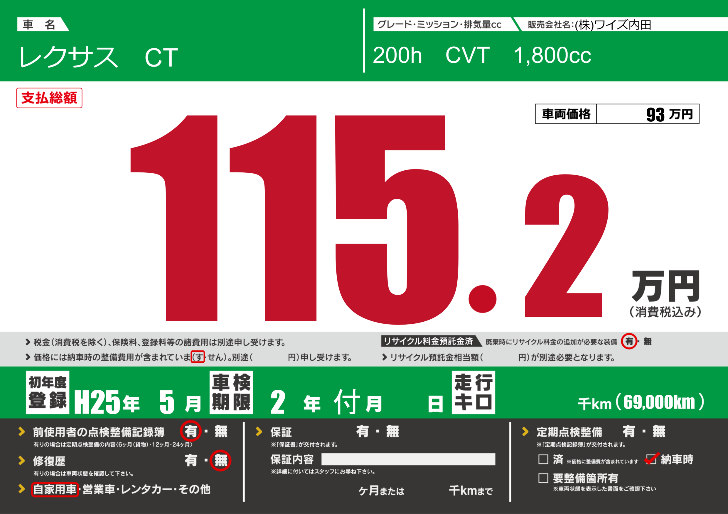 定期点検整備 | 納車時あり |